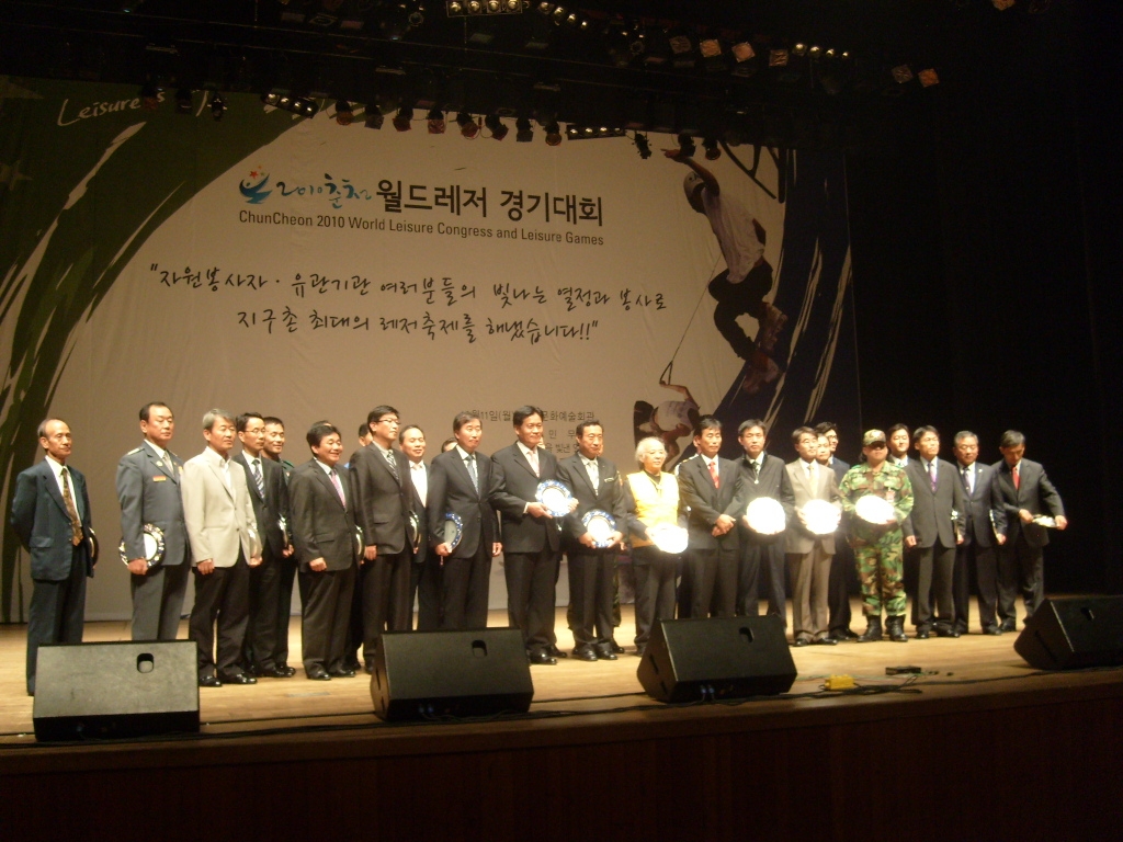 2010년 월드레져총회의 성공적 개최와 관련하여 춘천시의용소방대의 행사장 교통통제 지원봉사활동에 따라 감사패를 수여하였습니다. 이돈균 대장님을 비롯한 모든 대원님들 고생하셨습니다.