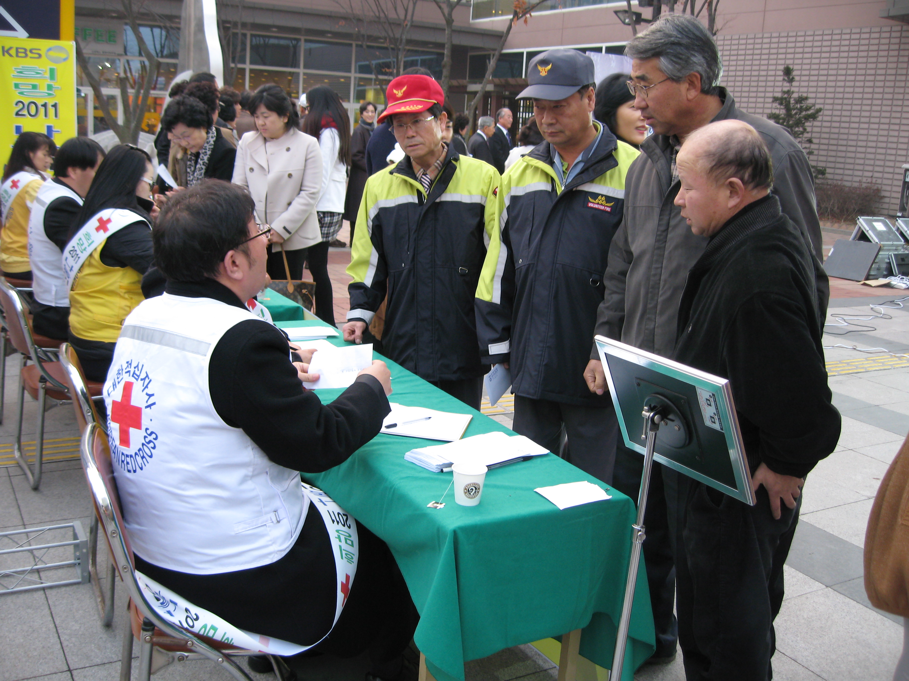 춘천의용소방대(대장 이돈균)에서는 12월2일 춘천 이마트 앞에서 KBS와 대한적십자가 주최하는 "희망 2011 나눔이 사랑입니다" 행사에 참석하여 대원들이 모은 소중한 성금을 전달하였습니다. 또한 이용갑 부대장님의 인터뷰가 생방송으로 방송되었습니다. 춘천시의용소방대는 앞으로도 어려운 이웃과 함께하는 봉사단체가 될것입니다.