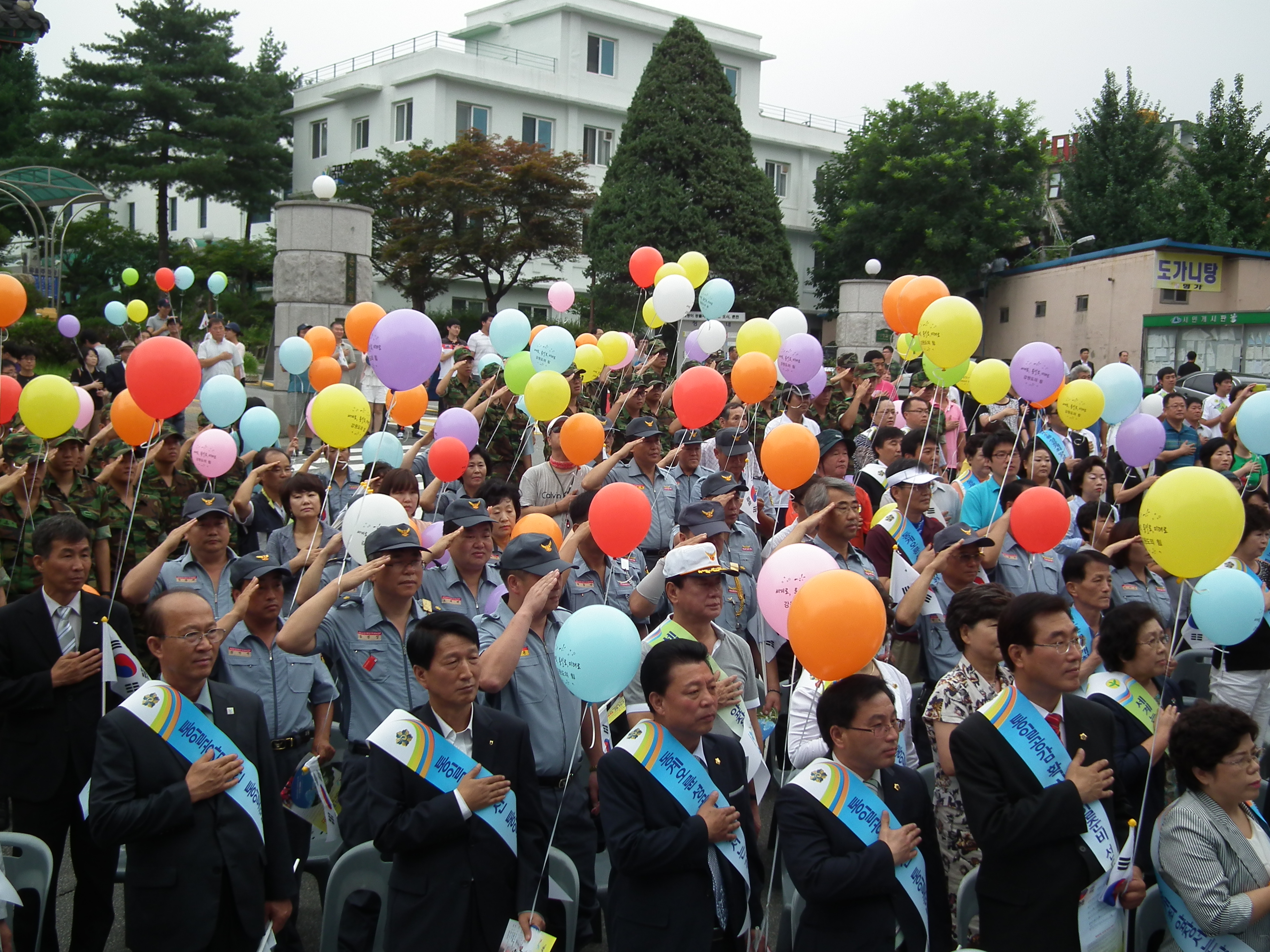 8월 15일 춘천시청앞에서 강원도의 힘 캠페인에 춘천 소방서장님, 이돈균 의용소방대장님외23명은 세계로 통일로 미래로 슬로건 아래 강원도의 힘 켐페인에 참석 하셨습니다.