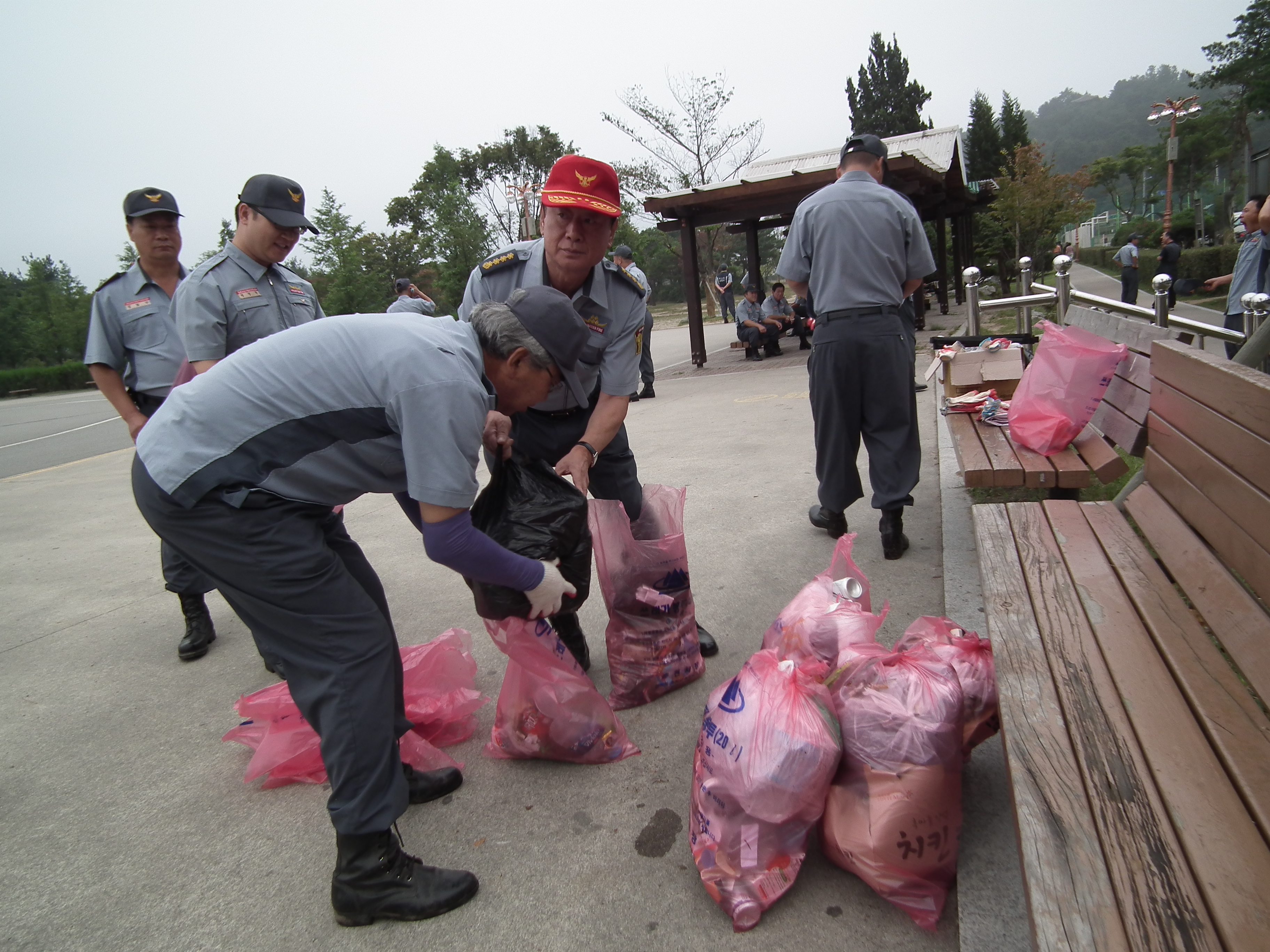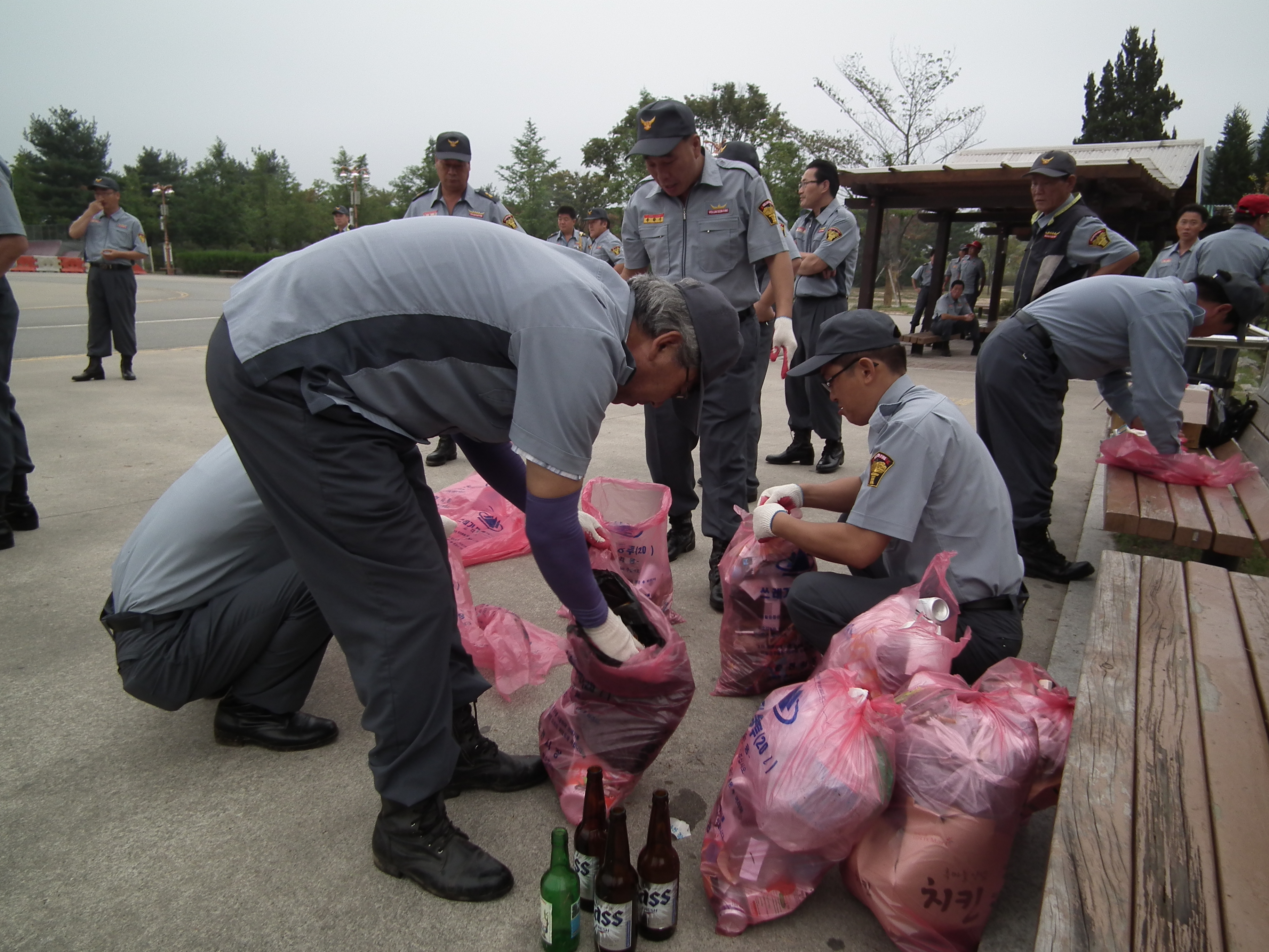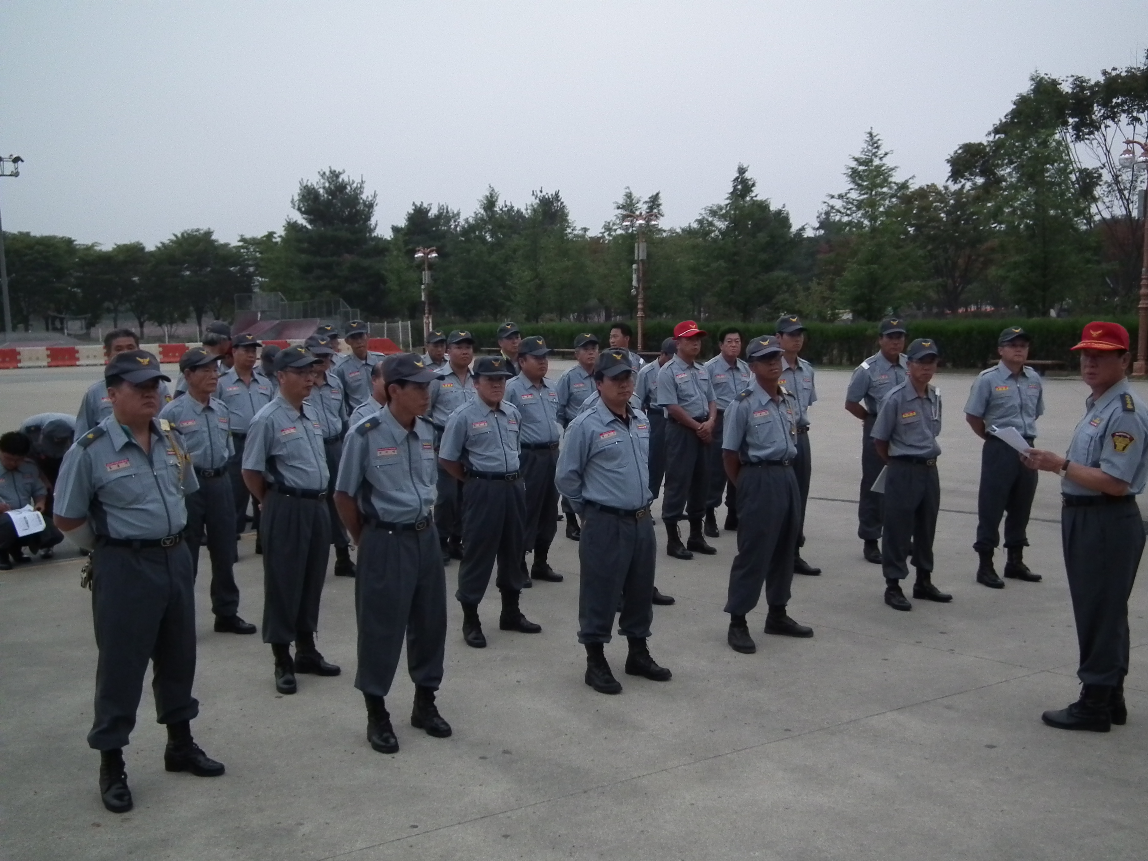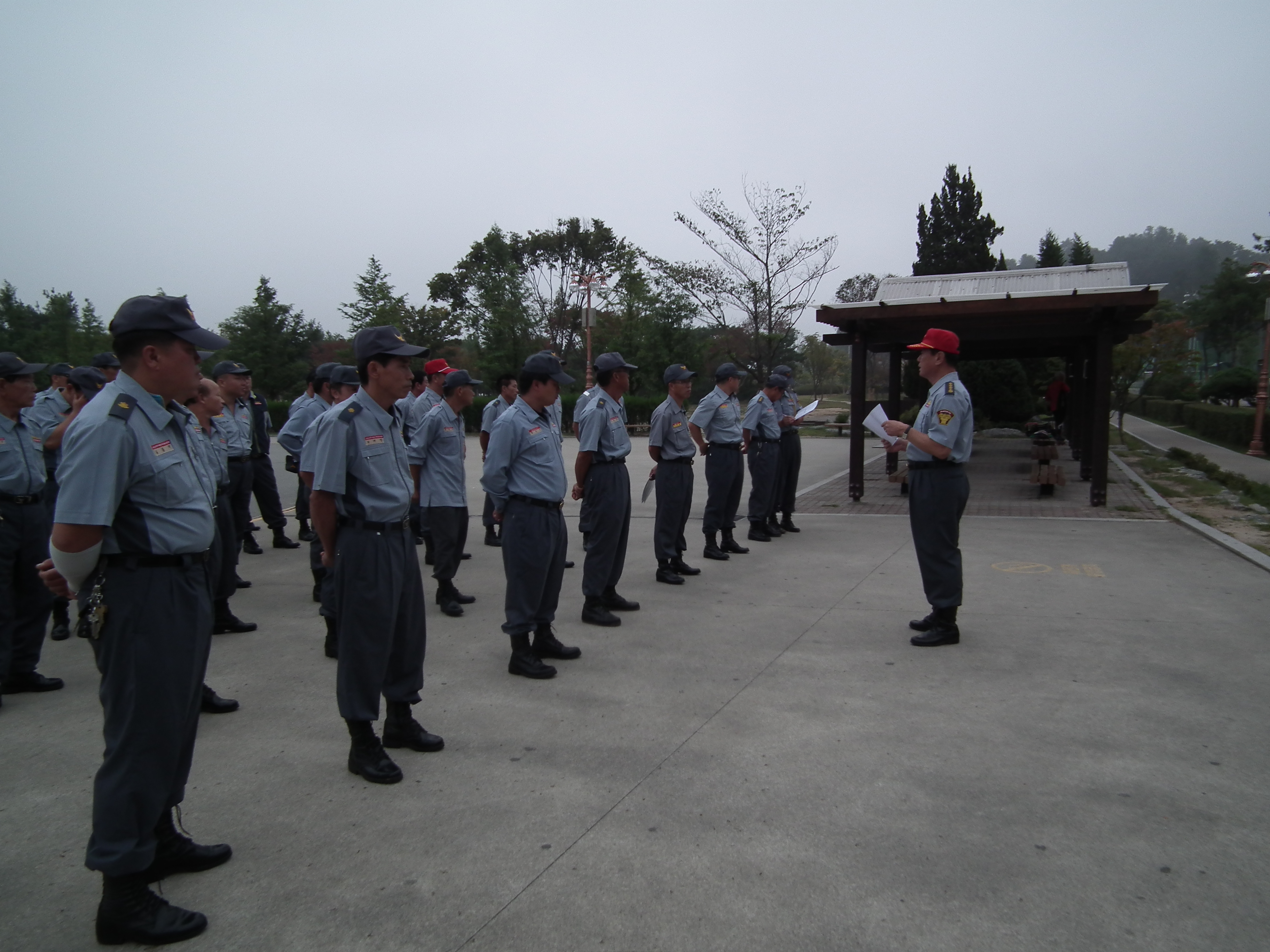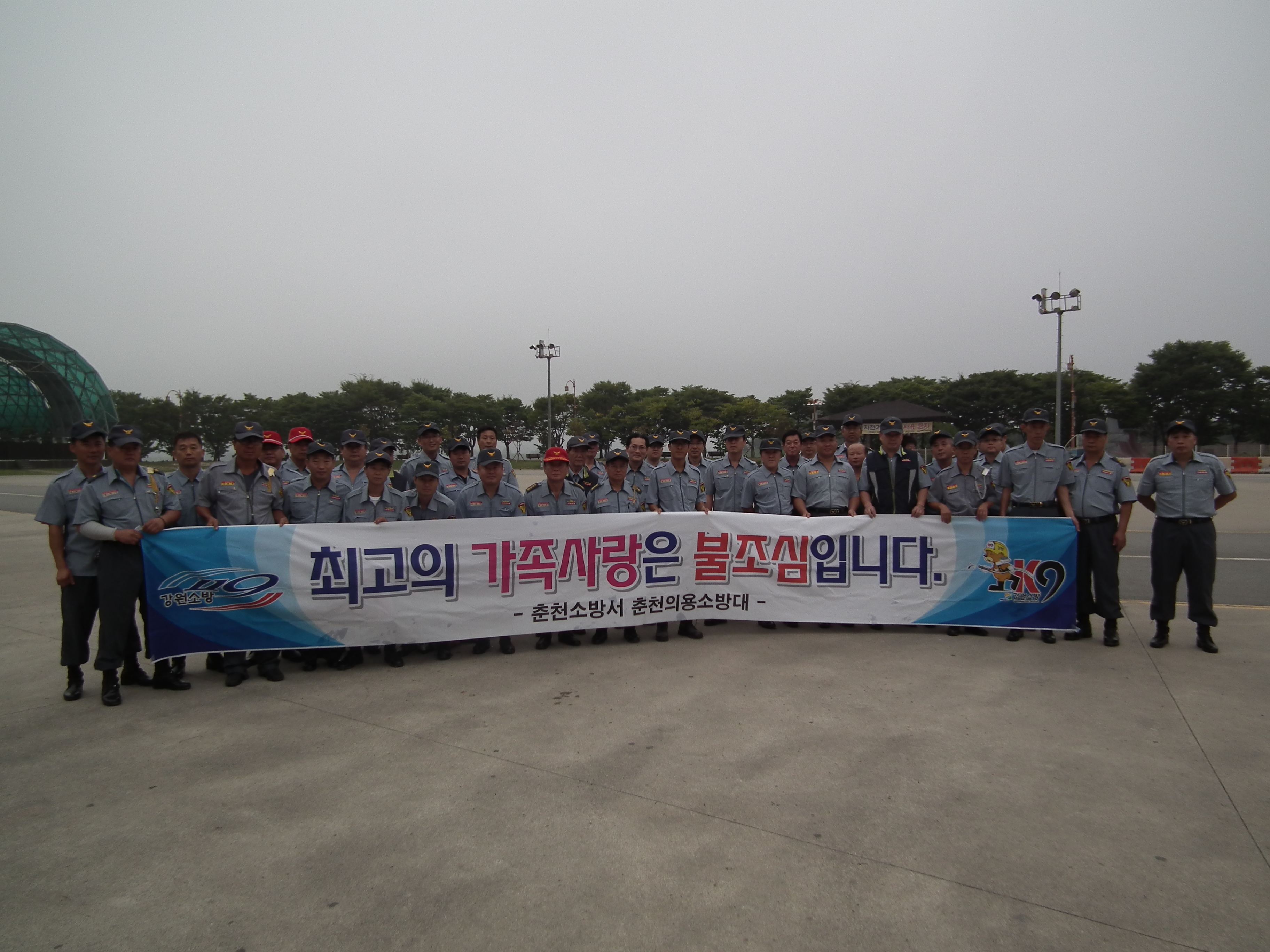 춘천의용소방대 대장(이 돈균)외 50여명은 15일 오전6시 공지천 야외음악당 앞에서