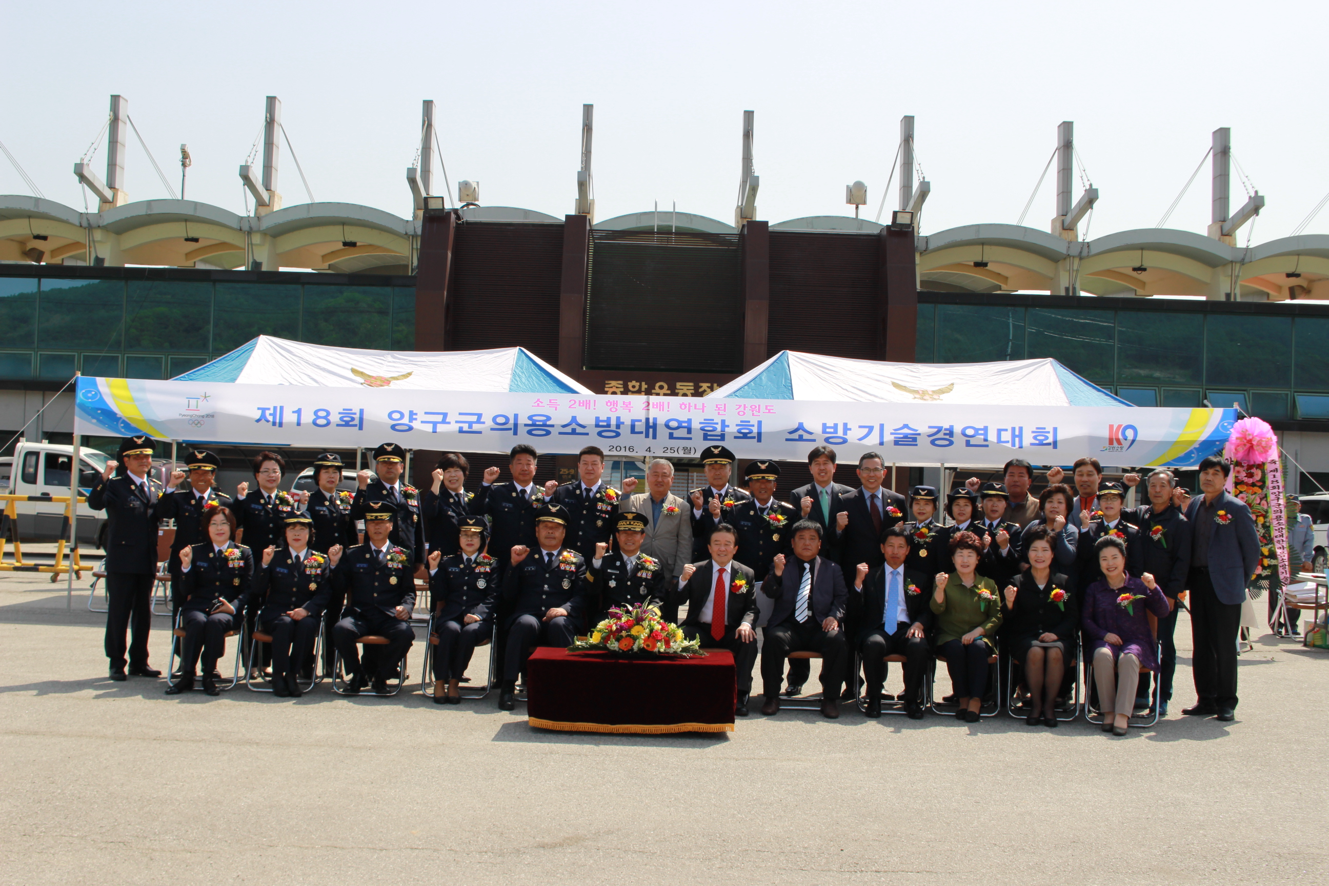 양구군의용소방대연합회는 군민의 생명과 재산보호를 위해 4월 25일, 양구종합운동장 광장에서 내빈 및 의용소방대원 등 300여명이 참석한 가운데 소방기술 경연대회를 개최했다.