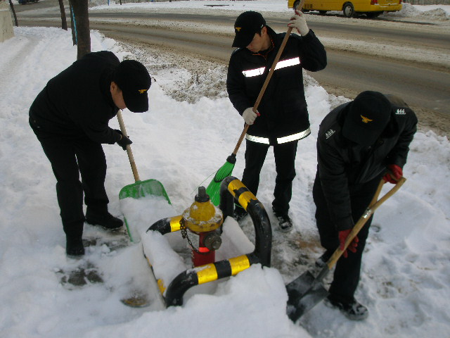 우리 석사119안전센터(센터장 소방위 권완근)에서는 관내 소화전 주변 제설작업을 실시하였습니다. 며칠새 내린 눈속에 쌓인 소화전주변을 깨끗하게 정리하였습니다.