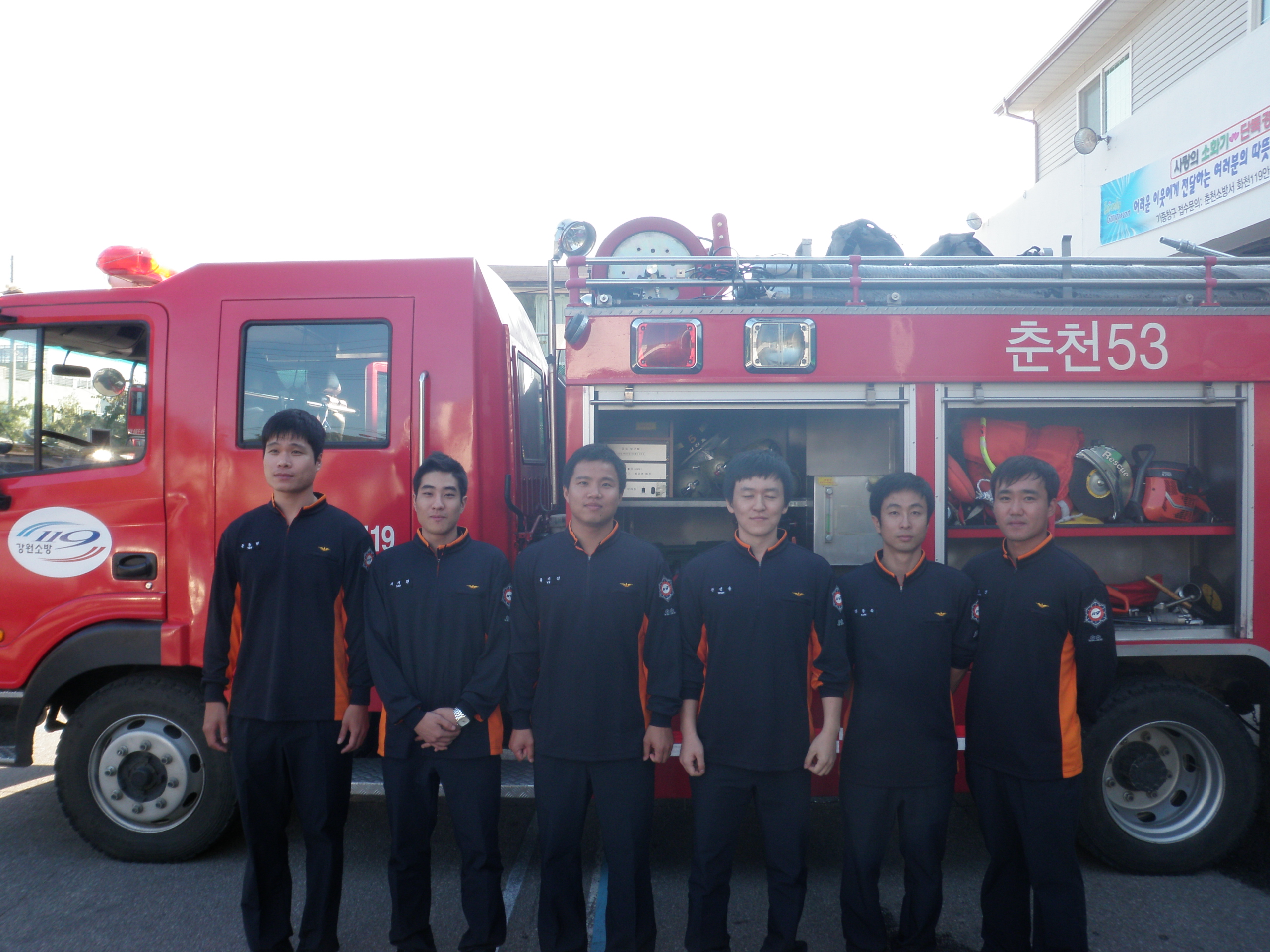 춘천소방서 화천119안전센터(센터장 한광모)에서는 2010년 10월 7일 서내 인사발령 및 공채 신규자 6명 임용에 따른 인원충원으로 2교대 근무에서 3교대 근무로 전환하여 근무개선을하였습니다.