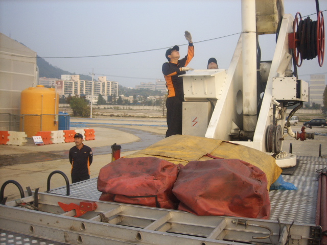 진압대원이 바스켓에 올라 바스켓에서 장비조작훈련을 센터자체적으로 실시하였습니다.