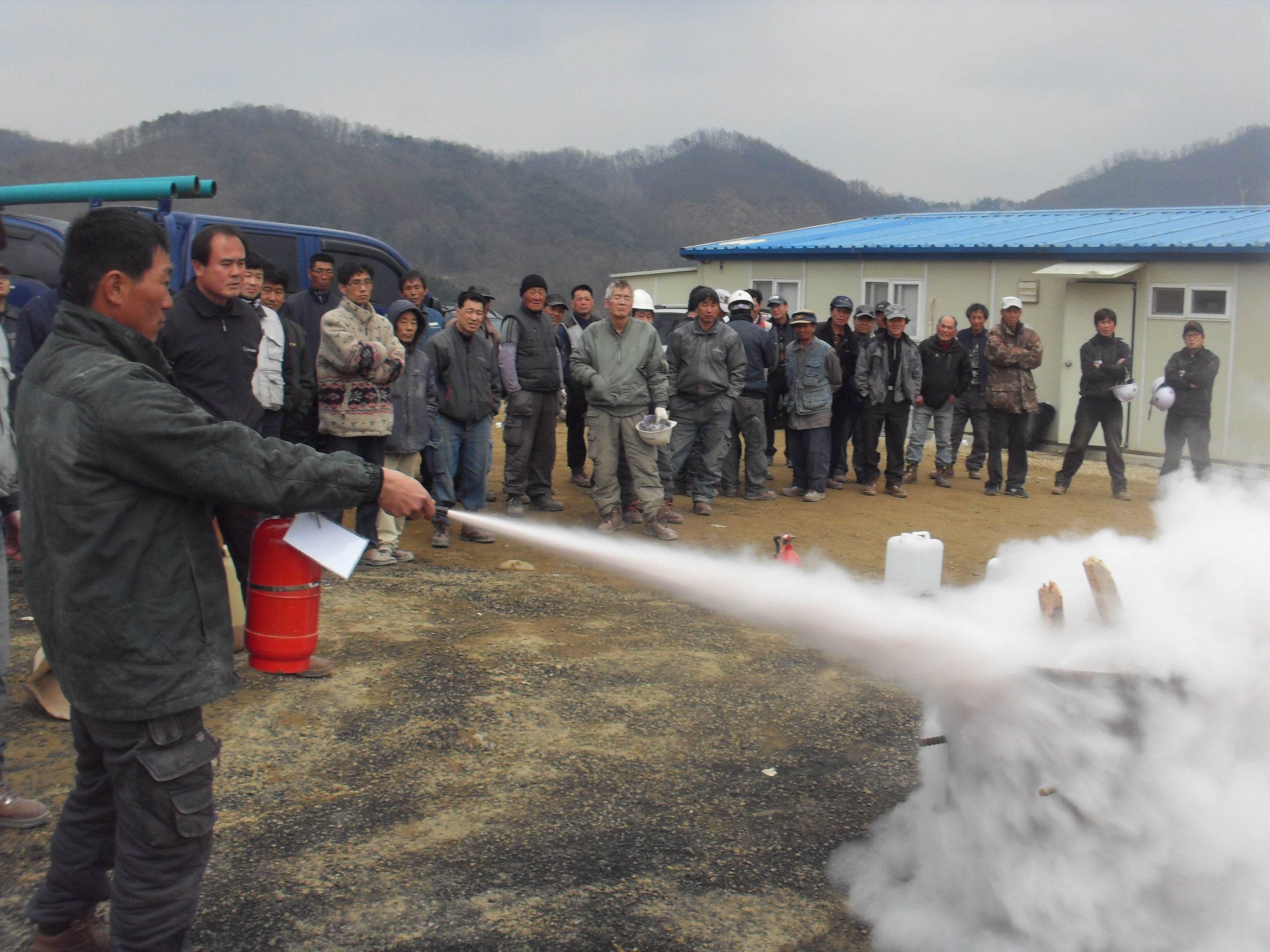 강촌119안전센터(센터장 소방위 반종군)에서는 봄철 소방안전대책의 일환으로 위스퍼링 파인즈CC(수동리 산192) 공사현장을 방문하여 현장인력 및 임직원 220여명을 대상으로 소방안전교육을 실시하였습니다. 화기취급시 안전수칙을 준수하고 사고발생시 초기에 신속히 대응할 수 있도록 교육하였으며 소화기를 직접 사용해보는 시간을 가졌습니다. 공사가 끝나는 그날까지 사고가 없기를 기원합니다.
