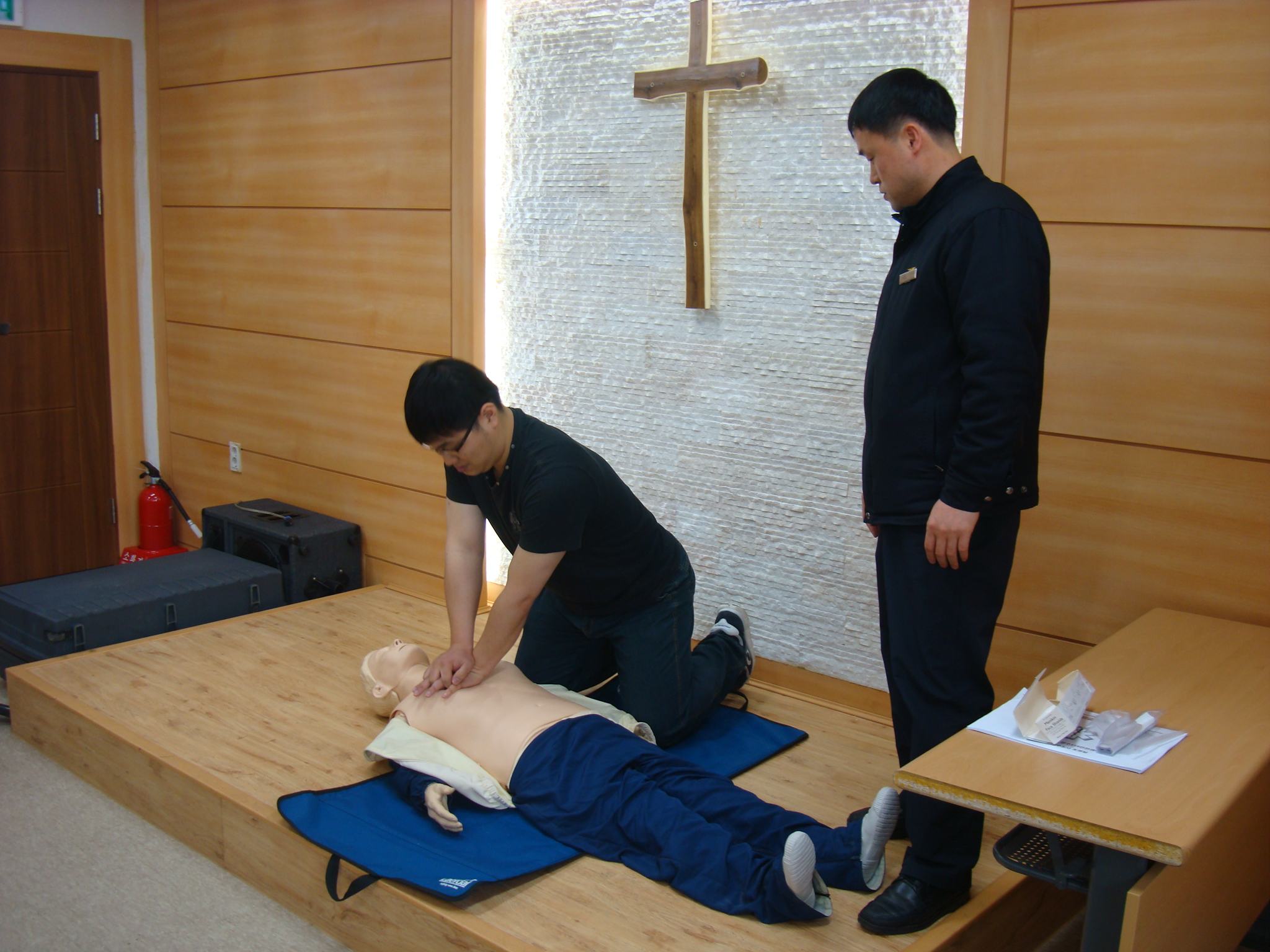 양구119안전센터(센터장: 소방경 장춘식)에서는 2011.04.28(목) 양구읍 정림리 사랑의 교회에서 양구군에서 운영하는 재가노인돌봄이회원분들을 대상으로 심정지환자에 대한 심폐소생술 실시 방법 및 제세동기 작동방법에 대하여 교육을 실시하였습니다.
