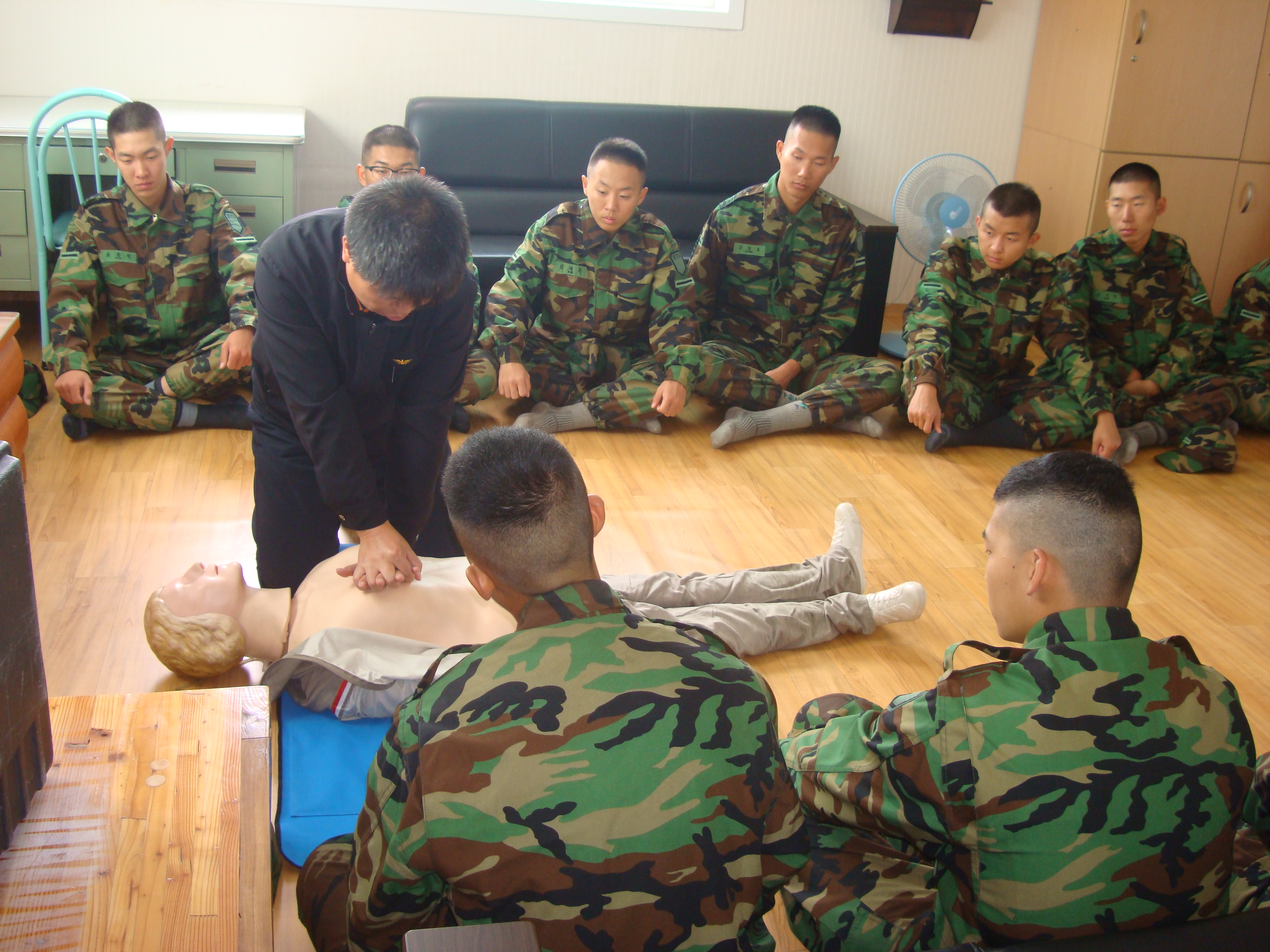 2011년 10월 15일(토) 사내119안전센터(센터장 반종범)에서는 오전 10시부터 27사단 수색대대 장병들을 대상으로 응급처치(심폐소생술)교육을 실시하였습니다. 교육에 임하는 우리대원과 육군장병 모두에게 보람찬 교육이었습니다.