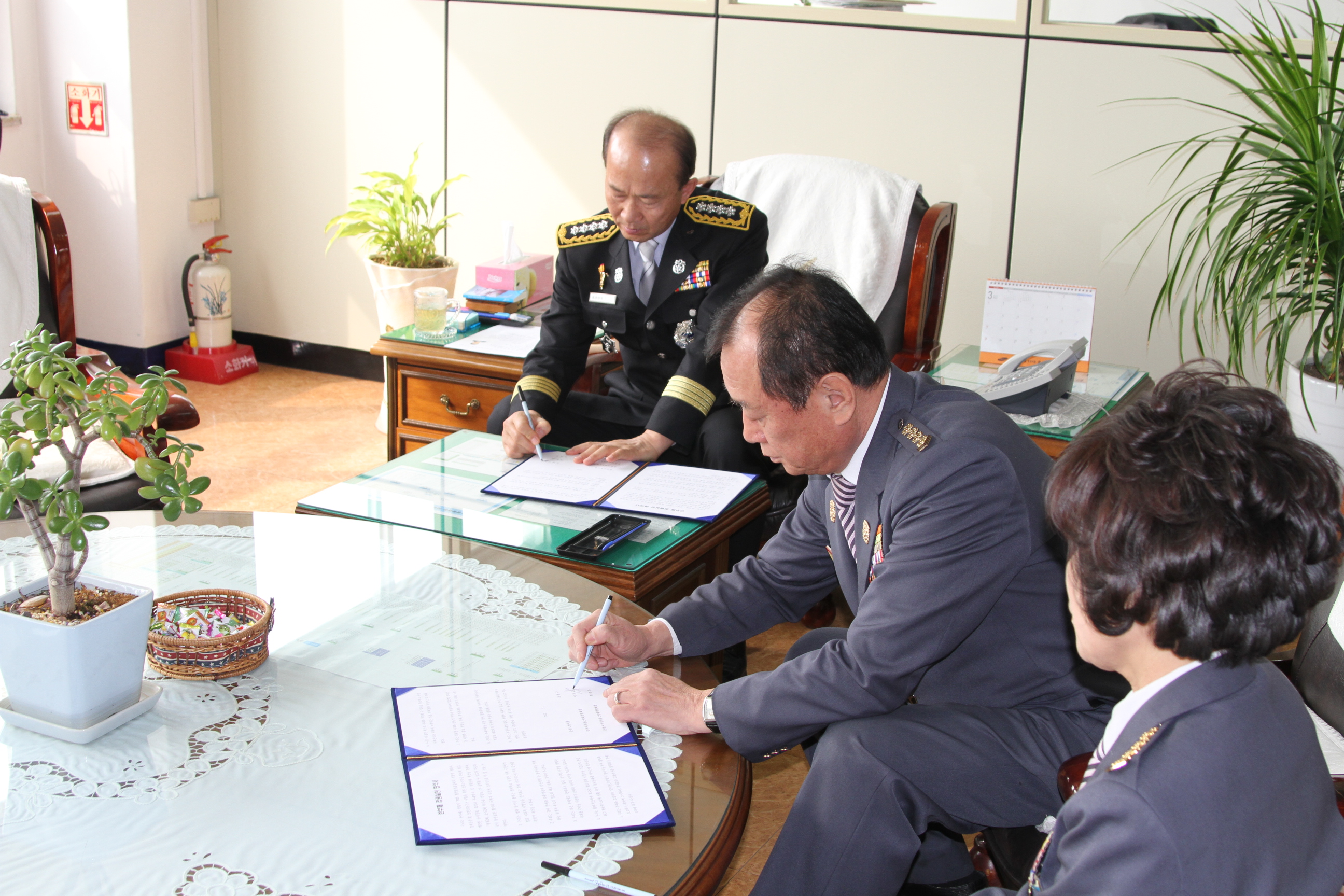 춘천소방서(서장 조완구)에서는 2012.03.07(수) 범도민 청렴의식 확산을 위한 "반부패 청렴실천 협약" 체결식을 가졌습니다. 이날 춘천소방서는 가장 이해관계가 돈독한 춘천시의용소방대 연합회 및 춘천시여성의용소방대 연합회와 협약을 체결하며 공직사회 부패근절 및 강원도 전역으로 청렴문화 의식 확산 의지를 다졌습니다.