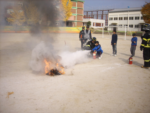 진압, 구급대원의 환자이송, 소화기 사용법 교육, 화재진압 체험과 소방안전교육을 실시하였습니다