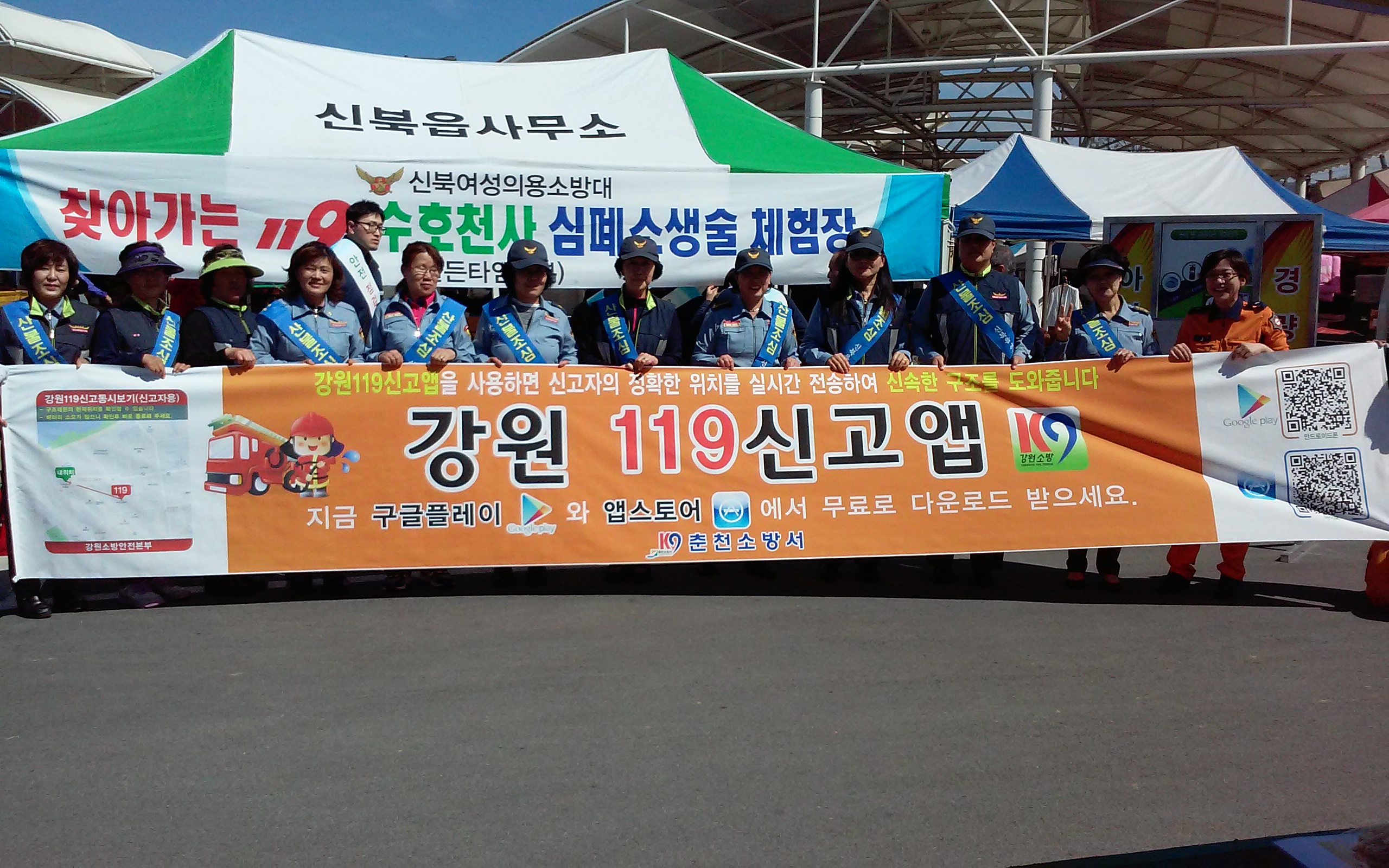 춘천소방서(서장 안중석)는 4일 오후 춘천시 신북읍 율문리 '샘밭장터'에서 강원119신고앱 설치 및 우리집 소방시설 바로알기 캠페인을 실시하였다.