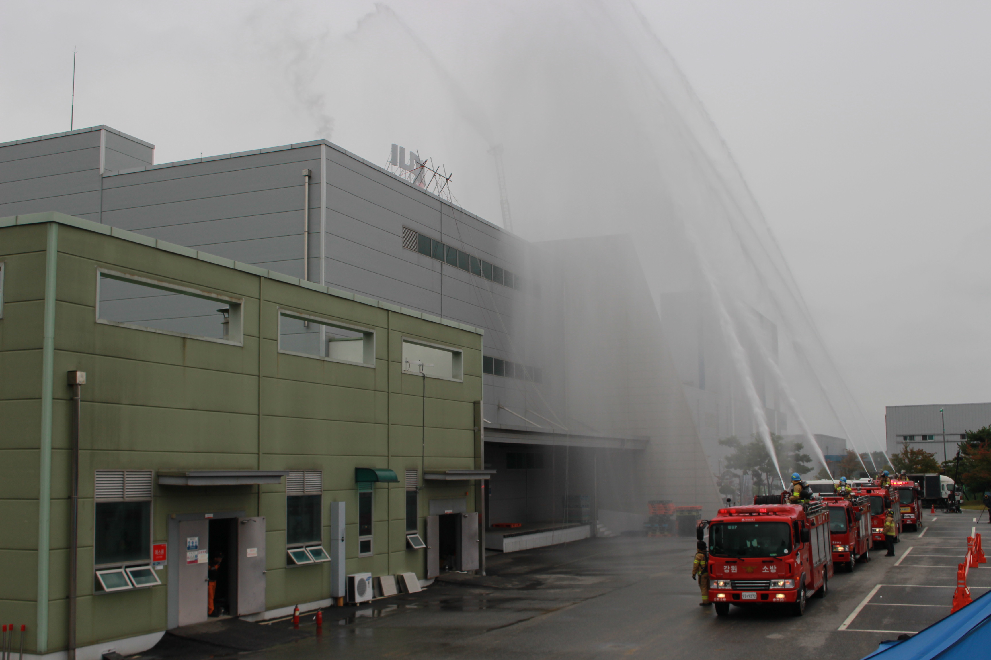 긴급구조종합훈련은 지난해 9월 28일 춘천시 동내면 거두리 거두농공단지내 일동후디스 춘천공장에서 가스누출로 인한 폭발 화재로 건물이 붕괴 되고 유해화학물질이 누출되어 다수사상자가 발생했다는 재난상황을 가상하여 소방서 등 유관기관 25개 기관 및 단체가 동원되어 훈련을 실시했다.