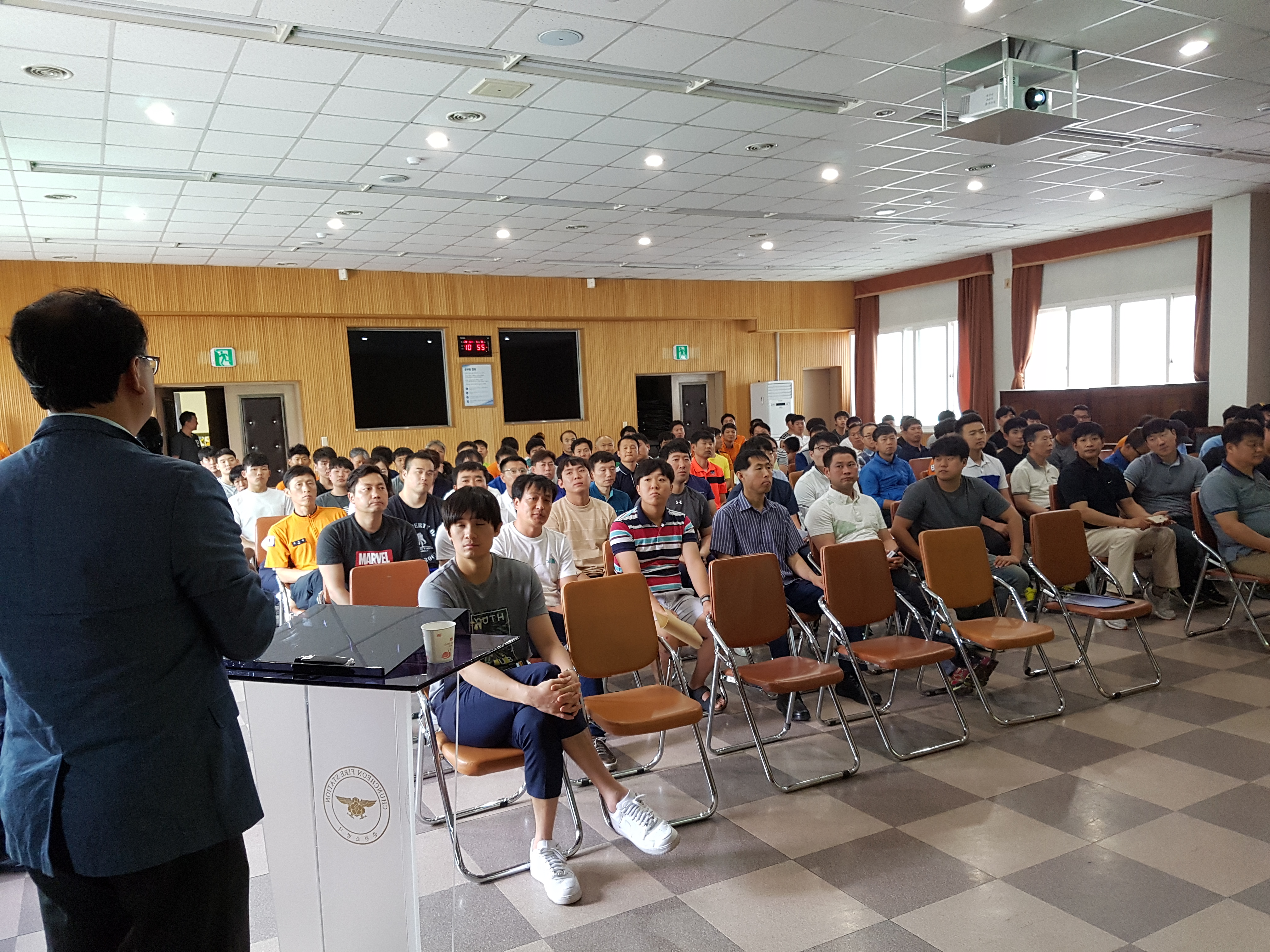 춘천소방서(서장 안중석)는 강원대학교 응급의학과장 조준휘 교수와 춘천경찰서 여성청소년계 정도진 경위를 초청 금일 오전 10시 본서 대회의실에서 구조·구급, 펌뷸런스 대원 120명을 대상으로 응급분만 및 온열환자 응급처치, 아동학대 예방을 위한 현장대응 교육을 실시했다.