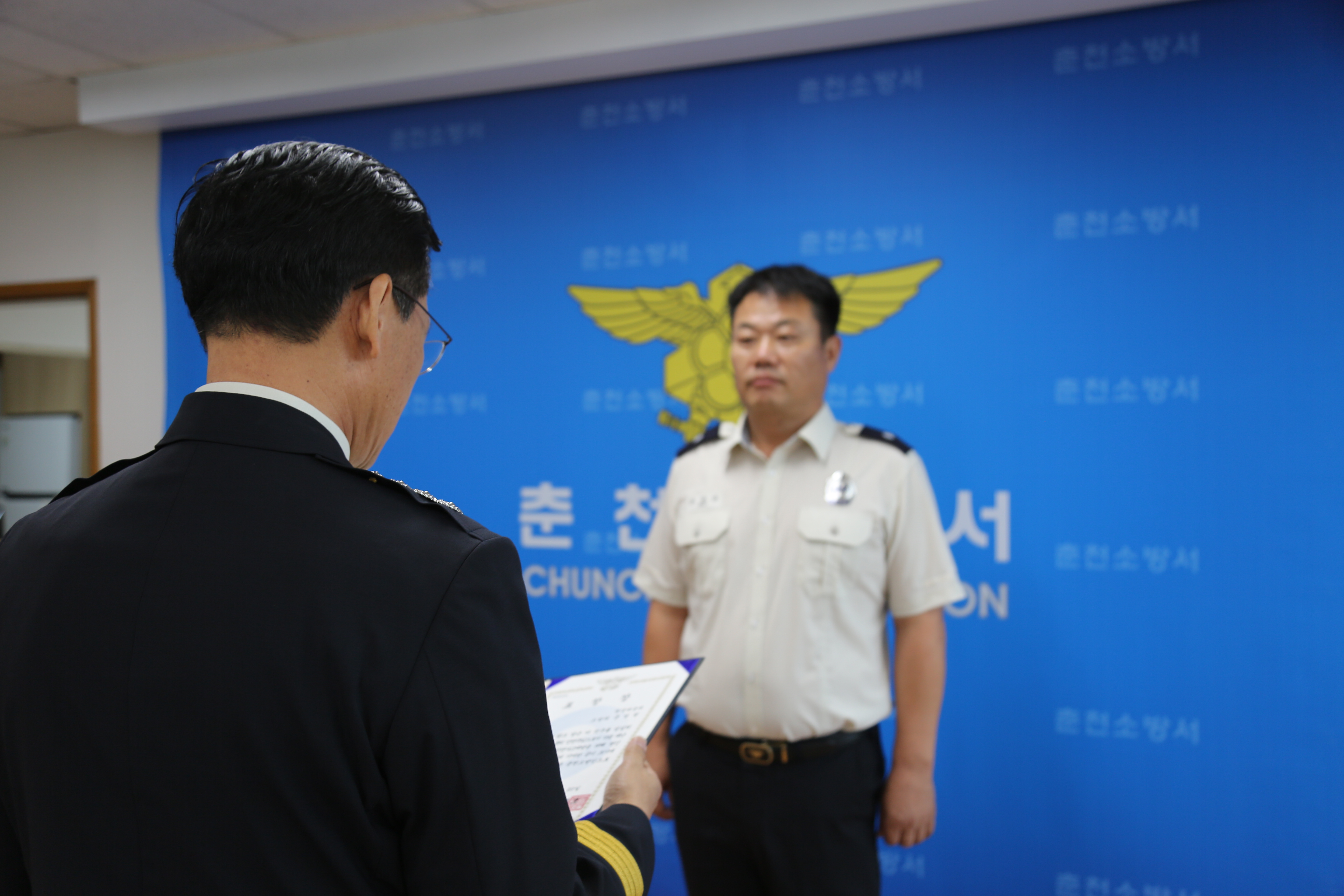 자랑스러운 춘천소방인은 직무를 성실하게 수행하고 동료 직원에게 칭송받는 자랑스러운 소방인을 발굴 격려하고자 매분기별 시행하고 있다.