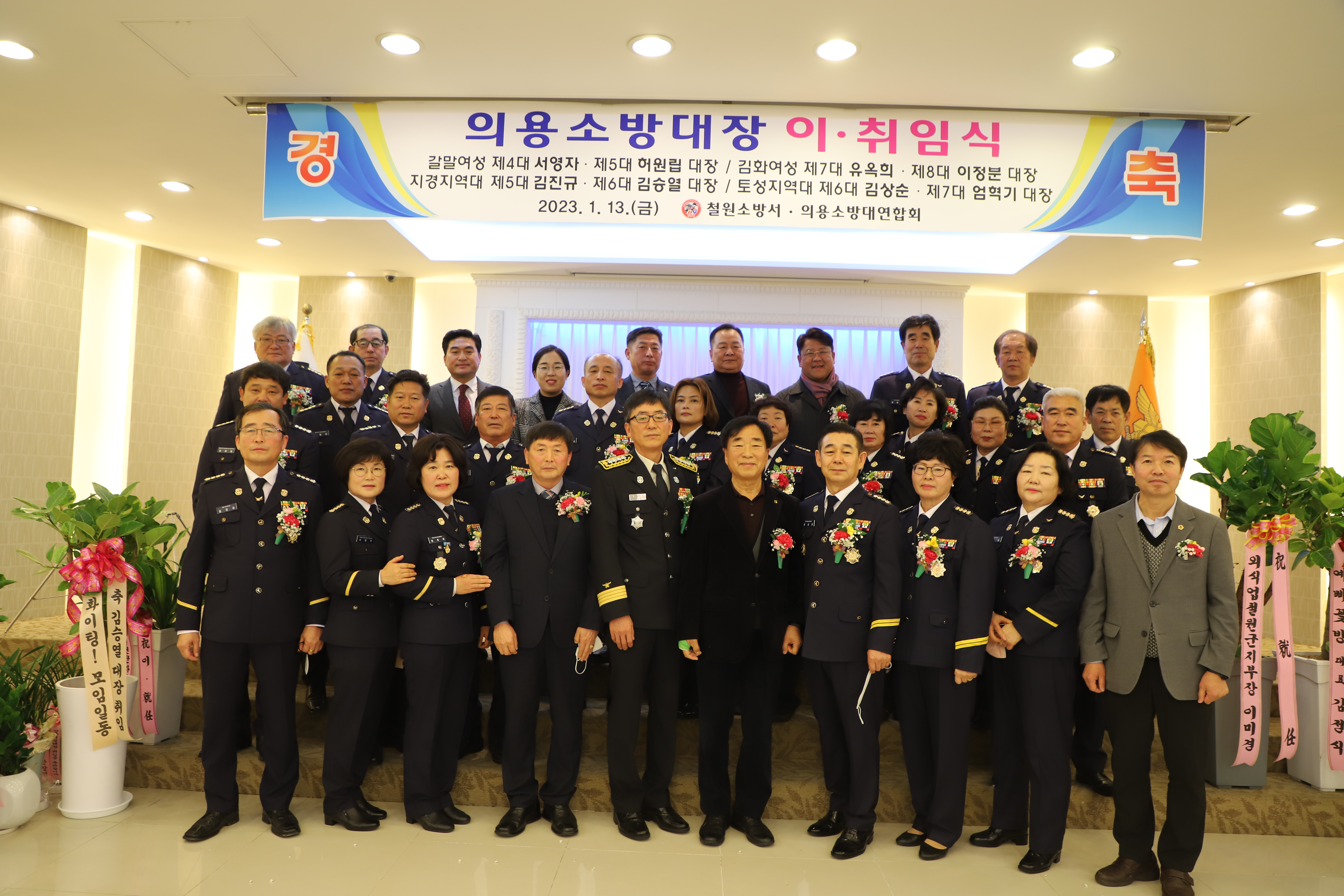 철원소방서(서장 정재덕)는 1월 13일 동철원농협웨딩홀에서 이현종 철원군수, 김정수, 엄기호 도의원을 비롯한 내빈들이 참석한 가운데 의용소방대장 합동 이· 취임식을 개최했다.