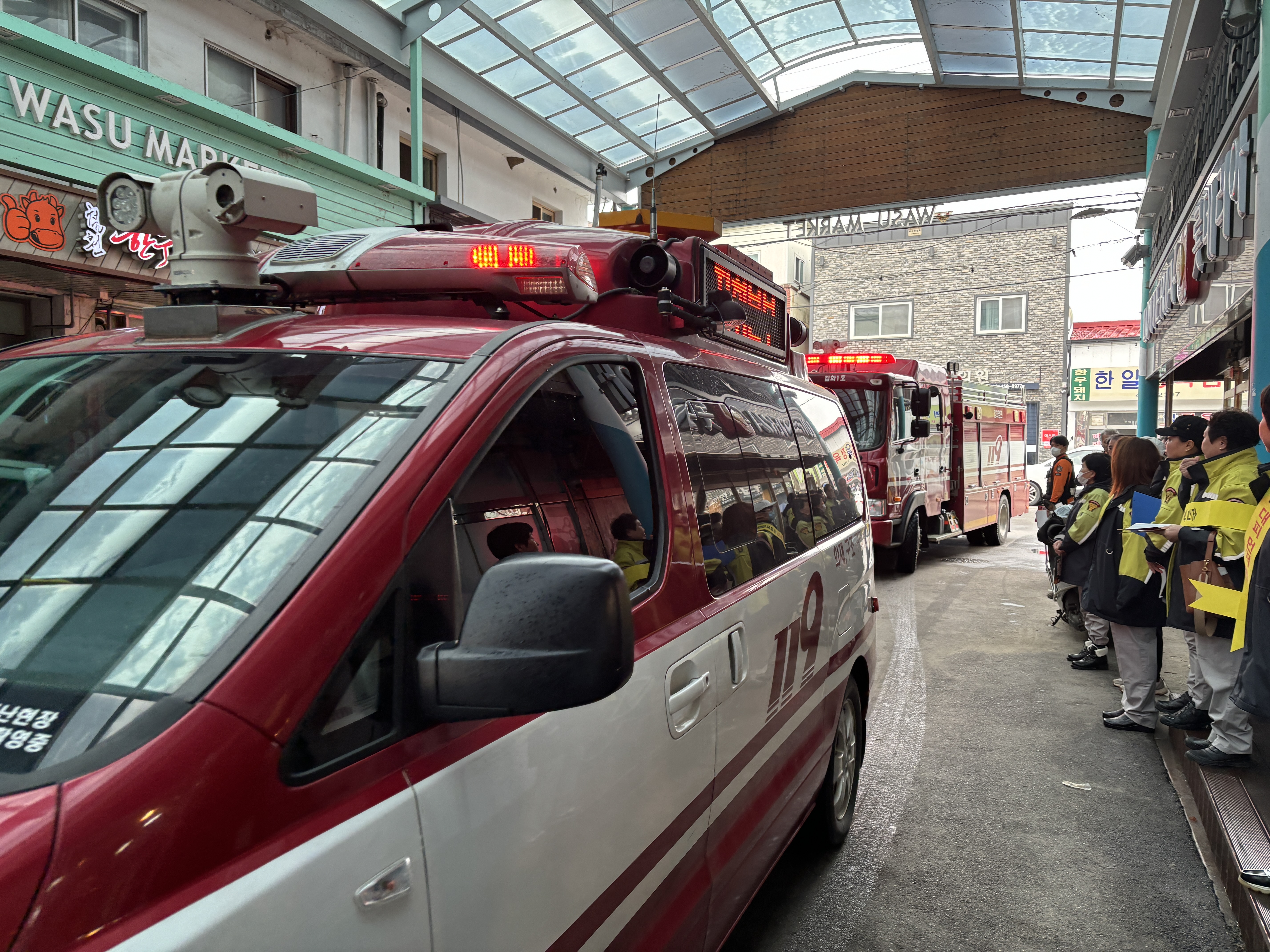 와수전통시장 소방차량 길 터주기 훈련