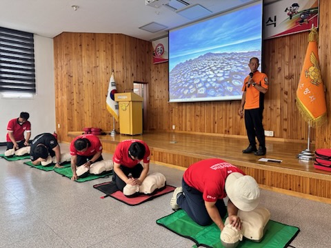 이어 구조·구급 전문 교관의 지도로 수난사고 대응 능력 강화를 위한 물놀이 안전지도·인명구조장비 사용법·심폐소생술 등 응급처치법 등 실전 중심의 교육과 훈련이 진행됐다.