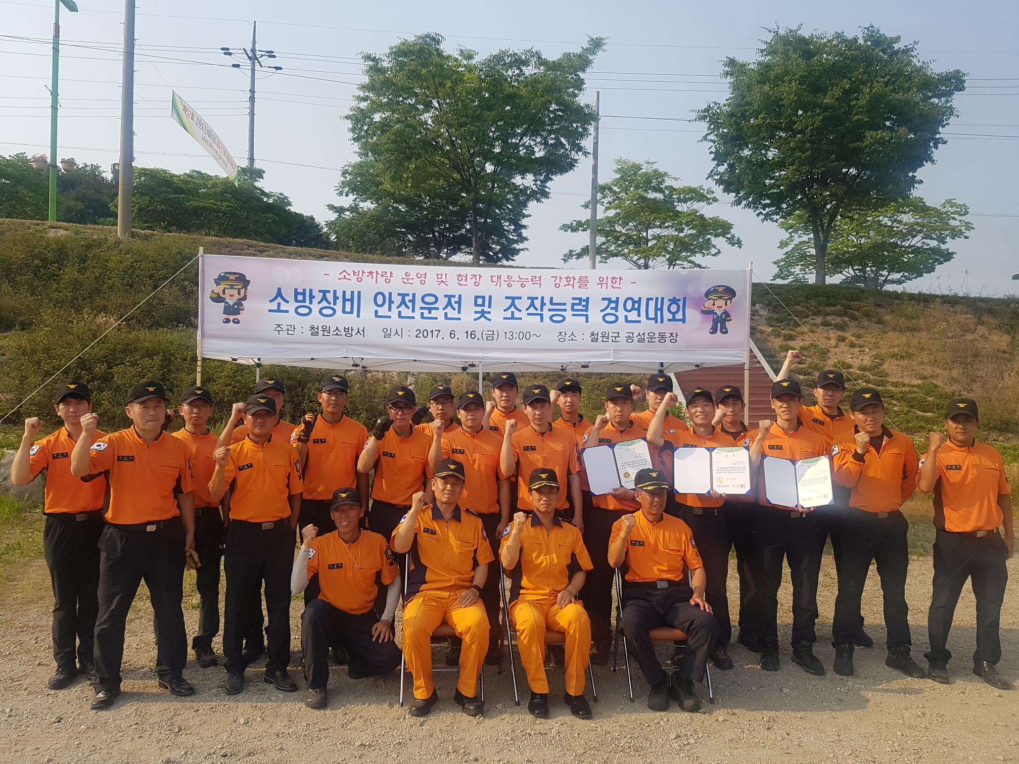 철원소방서(서장 이석철)는 2017. 6. 16(금) 13:00 철원군 공설운동장에서 소방차량 안전운전 및 장비조작 경연대회를 개최하였다. 이 대회는 현장 안전사고 방지와 현장 활동 대응 능력을 강화하기 위하여 소속 직원 12명치 참가한 가운데 소방차량 주행, 코스 수행 및 장비 조작 능력 평가로 진행되었다.