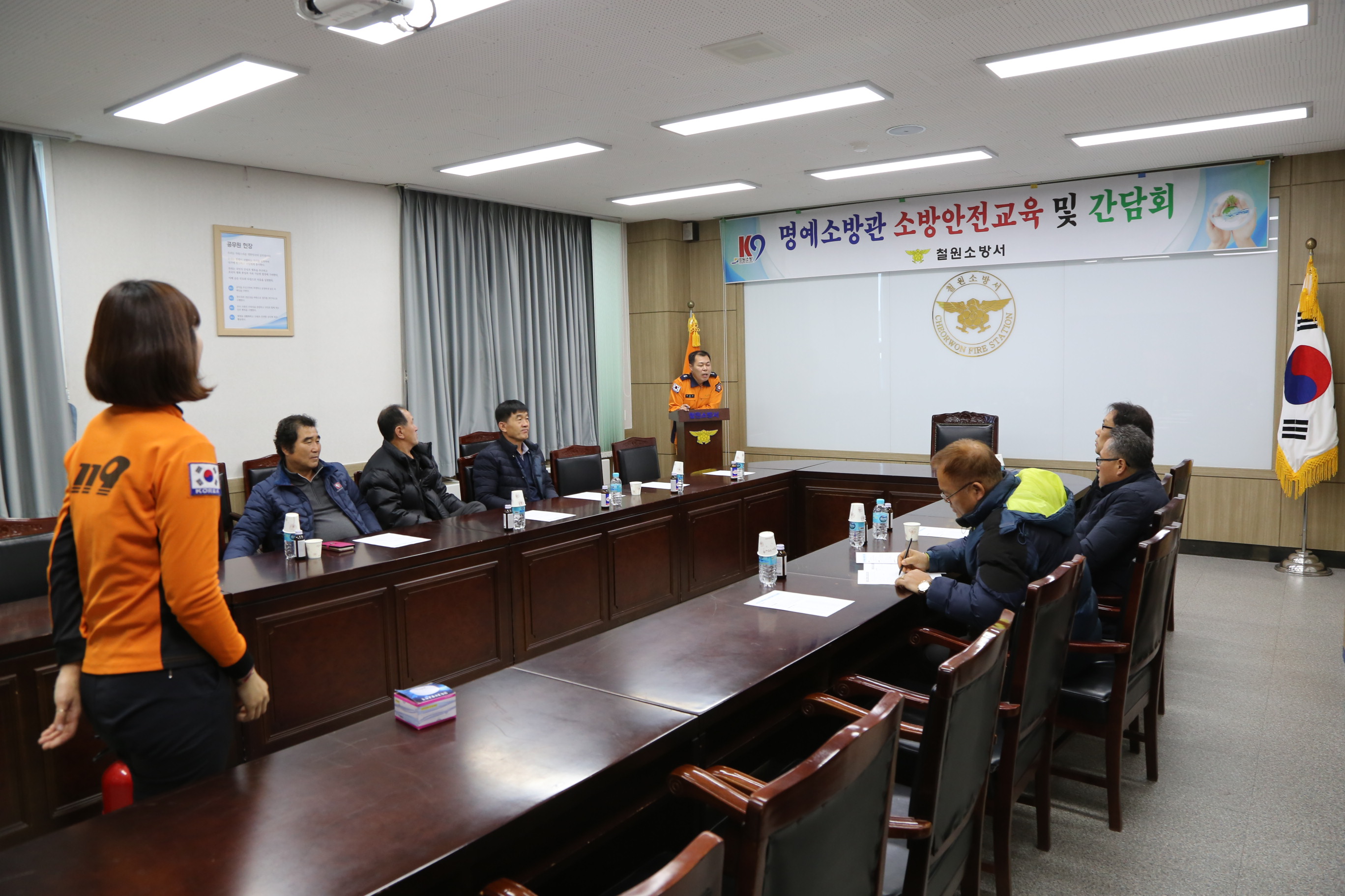 철원소방서(서장 이석철)는 지난 26일 오전 11시 소회의실에서 “화재 없는 안전마을”로 조성된 마을의 이장으로 구성된 명예소방관을 대상으로 소방안전교육을 실시했다.