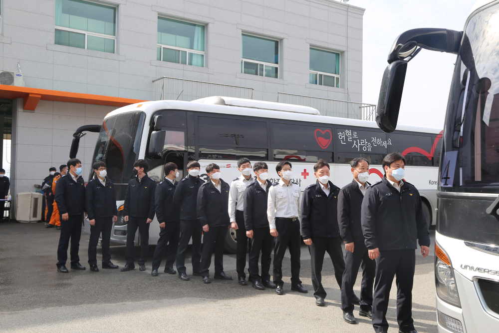 2020.03.09. 철원소방서 직원 및 의용소방대원은 코로나 19로 인한 헌혈 참여 저조로 혈액 수급률을 안정하하기 위해 헌혈에 동참했다.