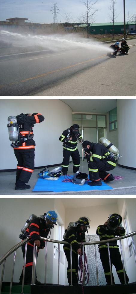 기초체력훈련을 시작으로 속도방수, 고층건물 화재진압훈련 등
