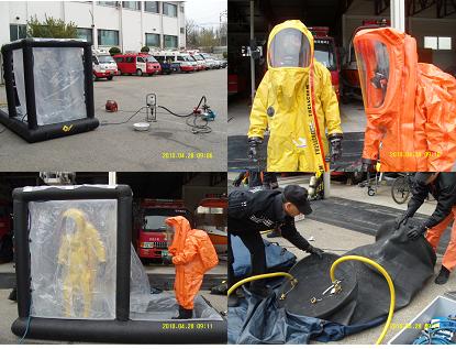 2010.04.28 동해소방서 119구조대(구조대장)은 화생방 및 화학 대테러 재난에 대비하여 구조대에 보유중인 화학구조장비에 대한 조작훈련을 실시하였습니다. 앞으로 지속적인 훈련을 통하여 각종 재난에 신속히 대응할 수 있는 역량을 키울 수 있도록 노력하겠습니다.