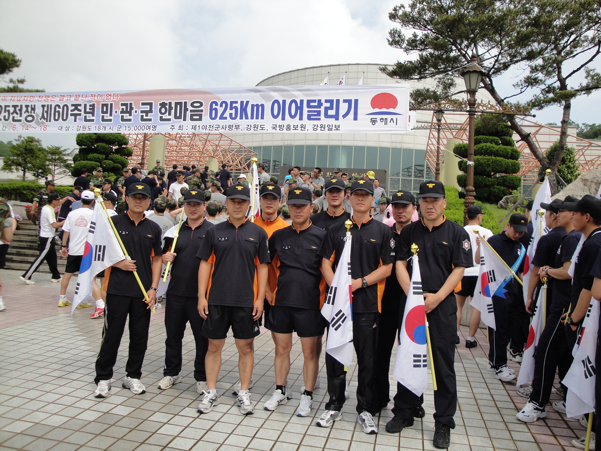 동해소방서(서장 김남숙)는 6.15(화) 『6.25전쟁 60주년 민.관.군 625㎞ 한마음 이어달리기』에 참여하여 소방공무원 11명과 군인 및 민간단체와 함께 문화예술회관에서 묵호역까지 함께 달리며 안보의식을 고취하고 참전용사의 값진 희생을 재조명하는 계기를 마련하였다. 이 행사는 강원도내 4곳에서 동시에 실시하며 고성군 통일전망대까지 4박5일 동안 625㎞를 이어달리게 된다.