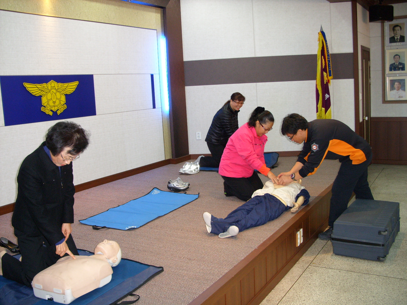 이날 교육에서는 마네킹을 이용하여 심폐소생술 등 응급처치요령을 실습 위주로 중점 교육하였고, 후정 체험장에서는 소화기 교육과 연기체험텐트를 이용한 농연장 체험훈련을 함으로써 소방안전을 직접 몸에 익히는 시간을 가졌습니다~^^