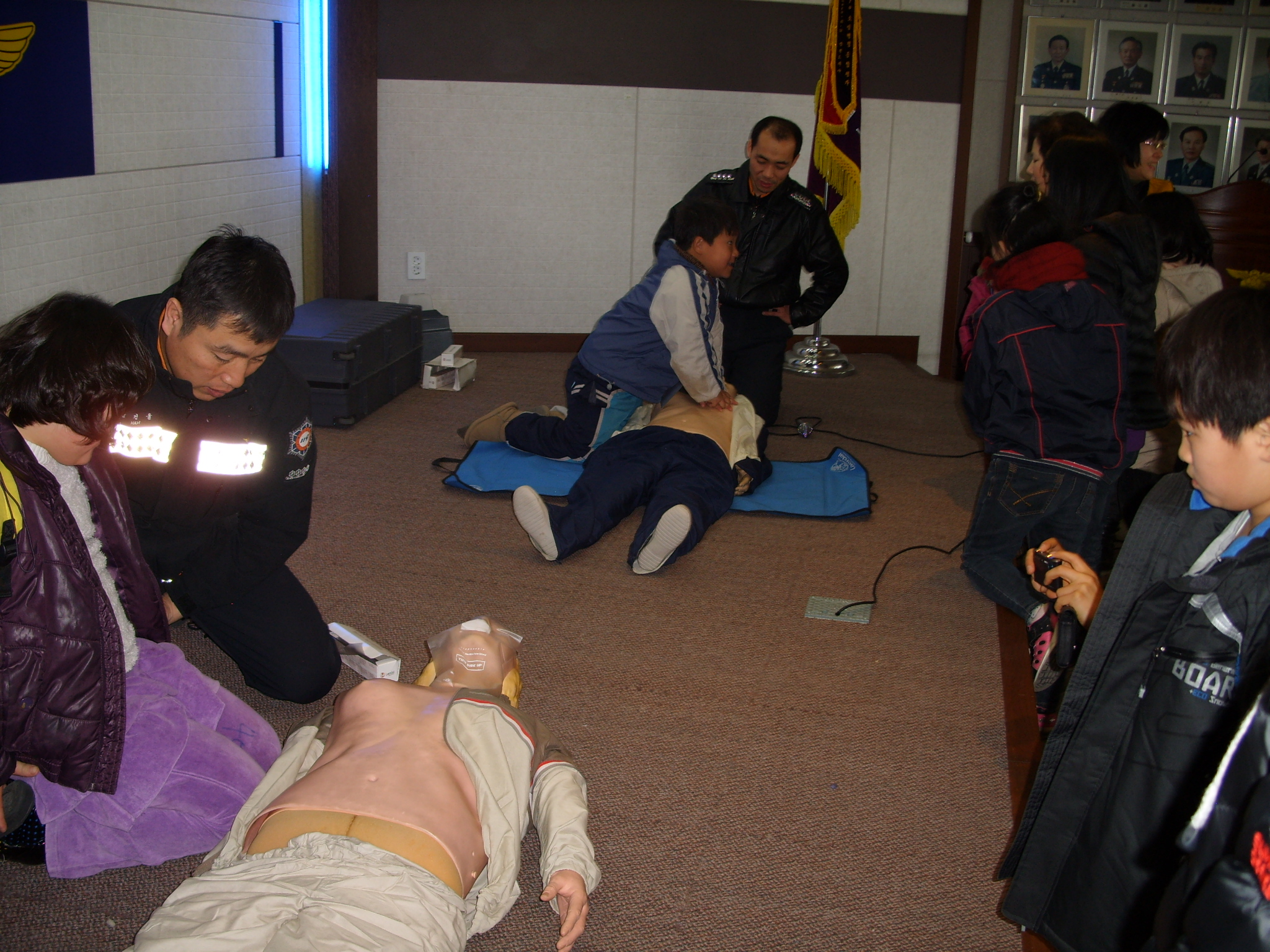 이날 교육은 학생들의 눈높이에 맞추어 소방서에서 하는 일, 화재 시 대피요령 등에 대한 이론교육과 소방관 아저씨와 함께하는 소방차 탑승체험과 방수체험, 심폐소생술 등 체험 위주의 교육을 실시하였다.