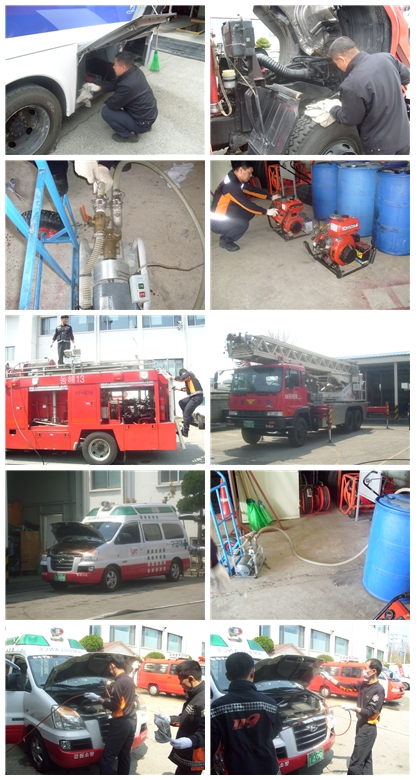 차량작동 점검 및 각종 오일 확인후 소방펌프 작동,차량 폼보충을 하였다.