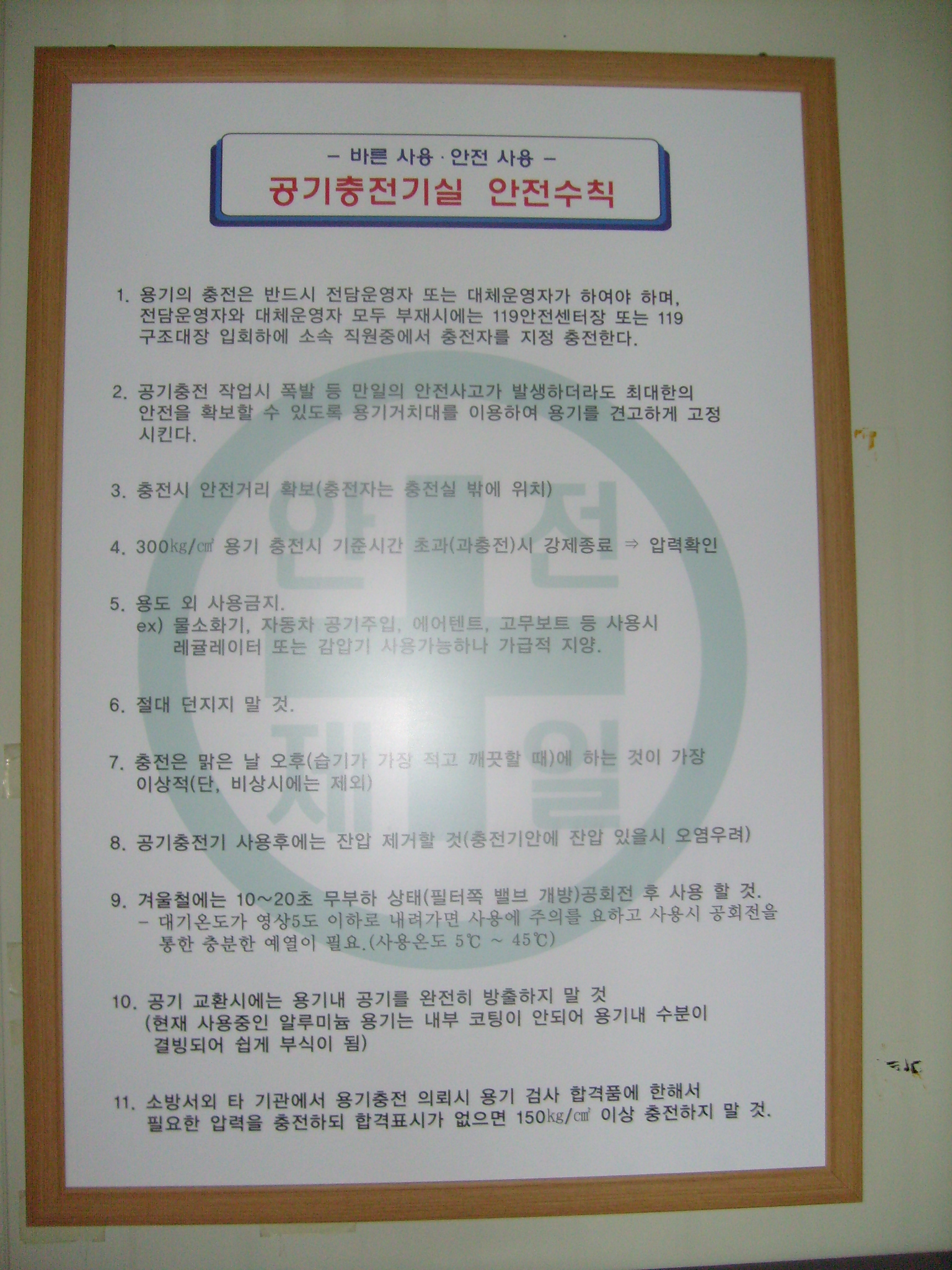 더불어 공기충전실 안전수칙도 매뉴얼하여 충전작업중의 작은 실수도 용납치 않겠다는 천곡센터 직원들의 높은 안전의식에 대한 의지의 표현이라 하겠다.