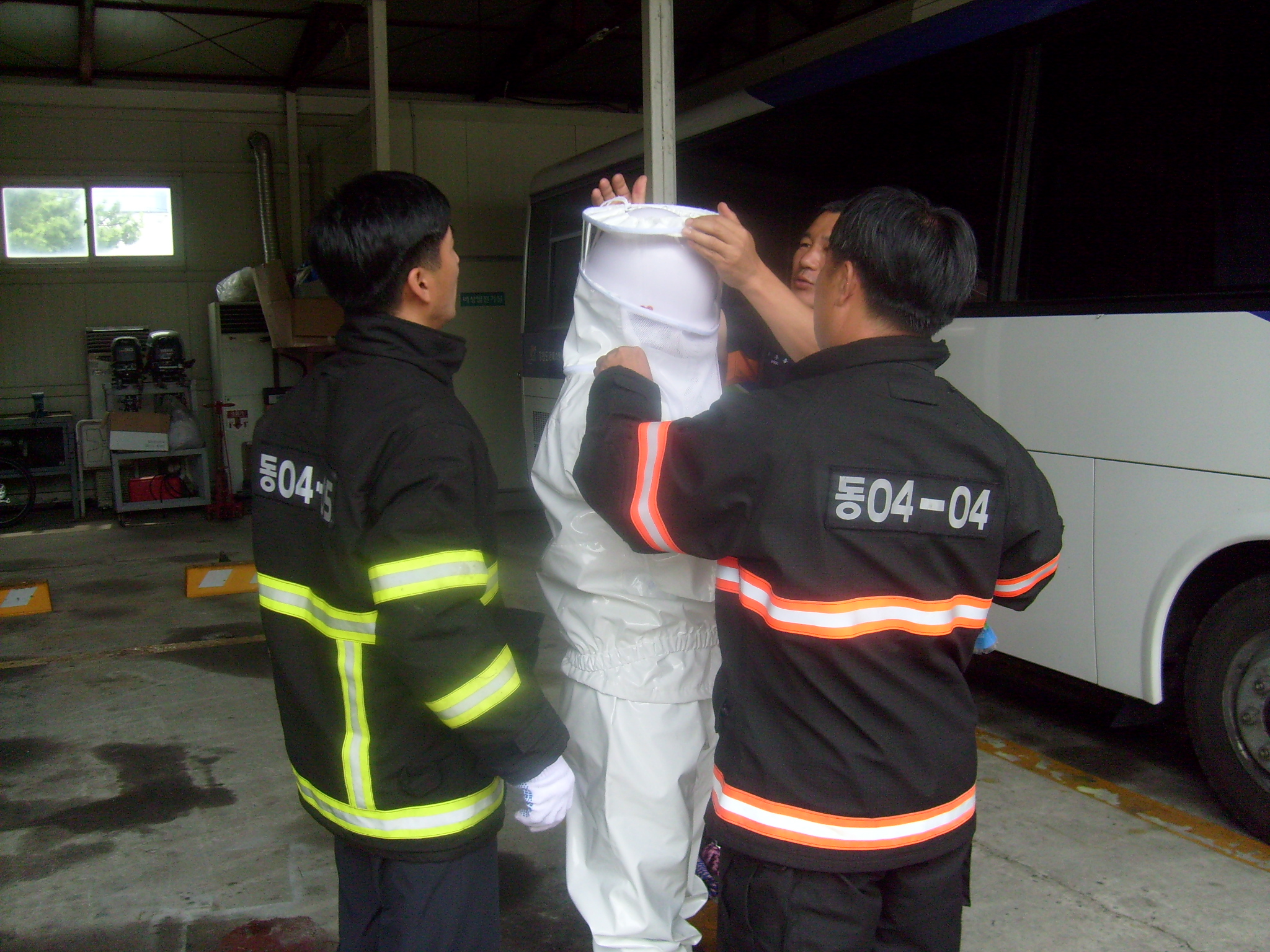 근래 벌집제거 등의 출동이 잦은 바 해충보호복 착용방법 및 벌집제거 요령 등을 교육하였다.