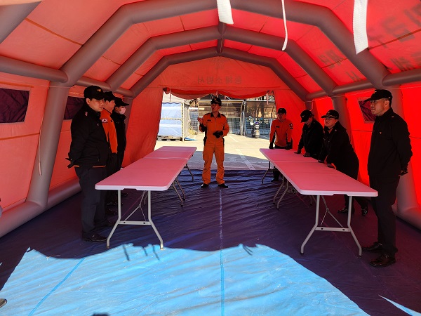 동해소방서(서장 김정희)는 20일 오전 청사 앞에서 신속한 재난 현장 대응체계 확립을 위해 긴급구조통제단 설치 훈련을 실시했다.