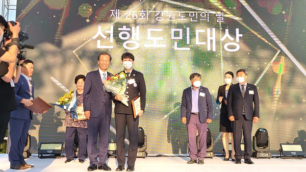 동해소방서 방호구조과에서 근무하는 김민준 소방관이 지난 8일 도민안전의 날 행사에 선행을 실천한 4명의 도민을 선정하는 ‘2020년도 제24회 강원도 선행도민대상’에서 효행부문을 수상했다고 밝혔다.