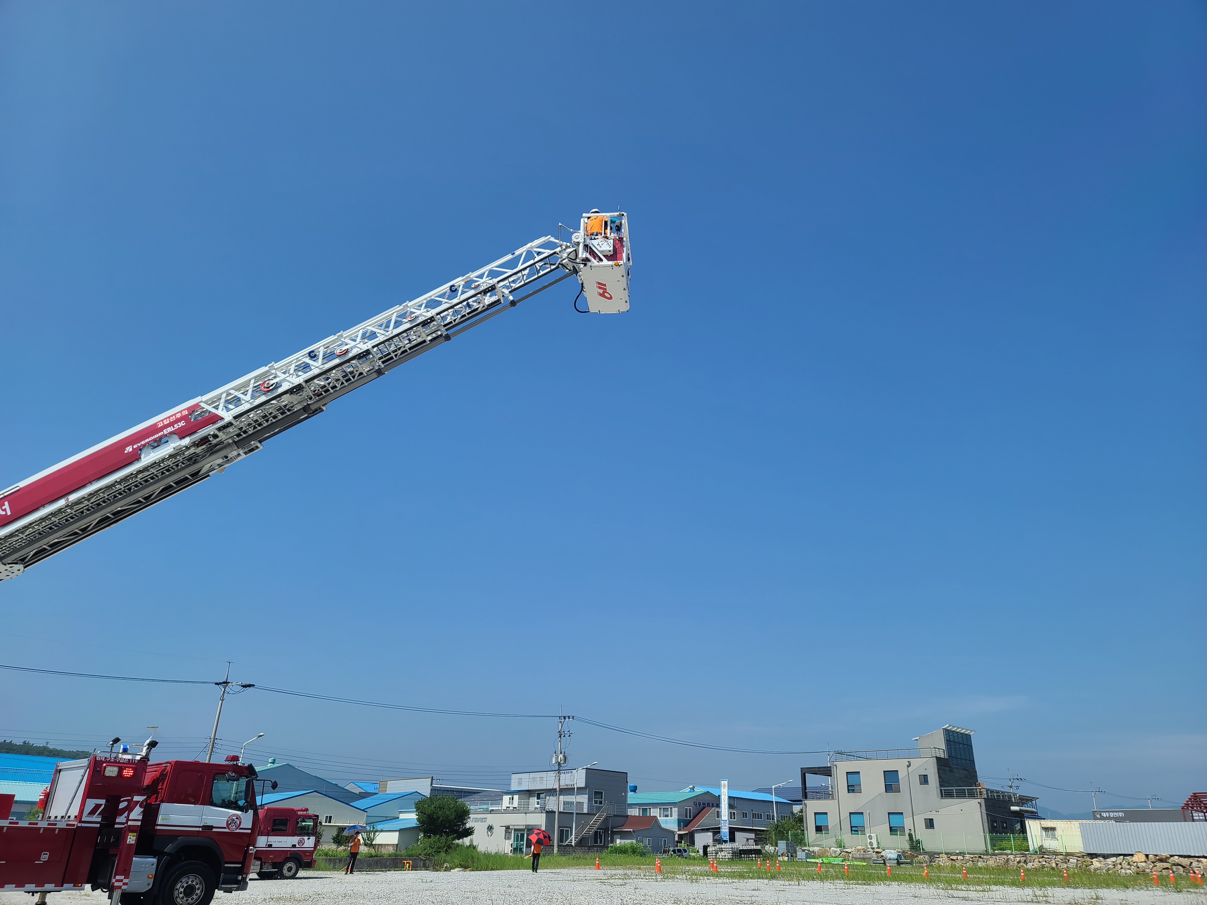 동해소방서, 고가사다리차 무인방수 조작훈련 실시