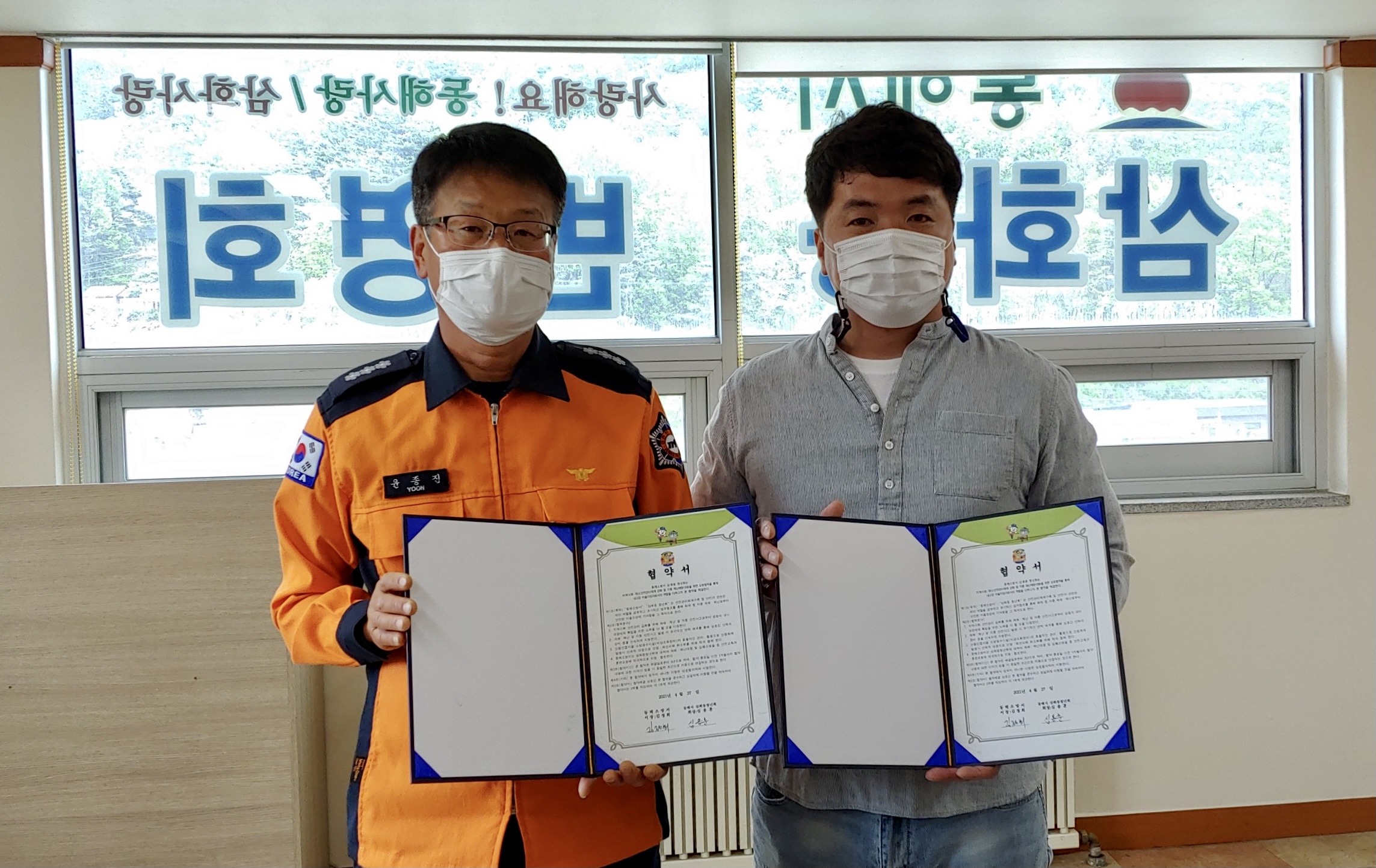 인명과 재산피해 최소화를 위해 적극적으로 협력한다는 협약서에 서명하고