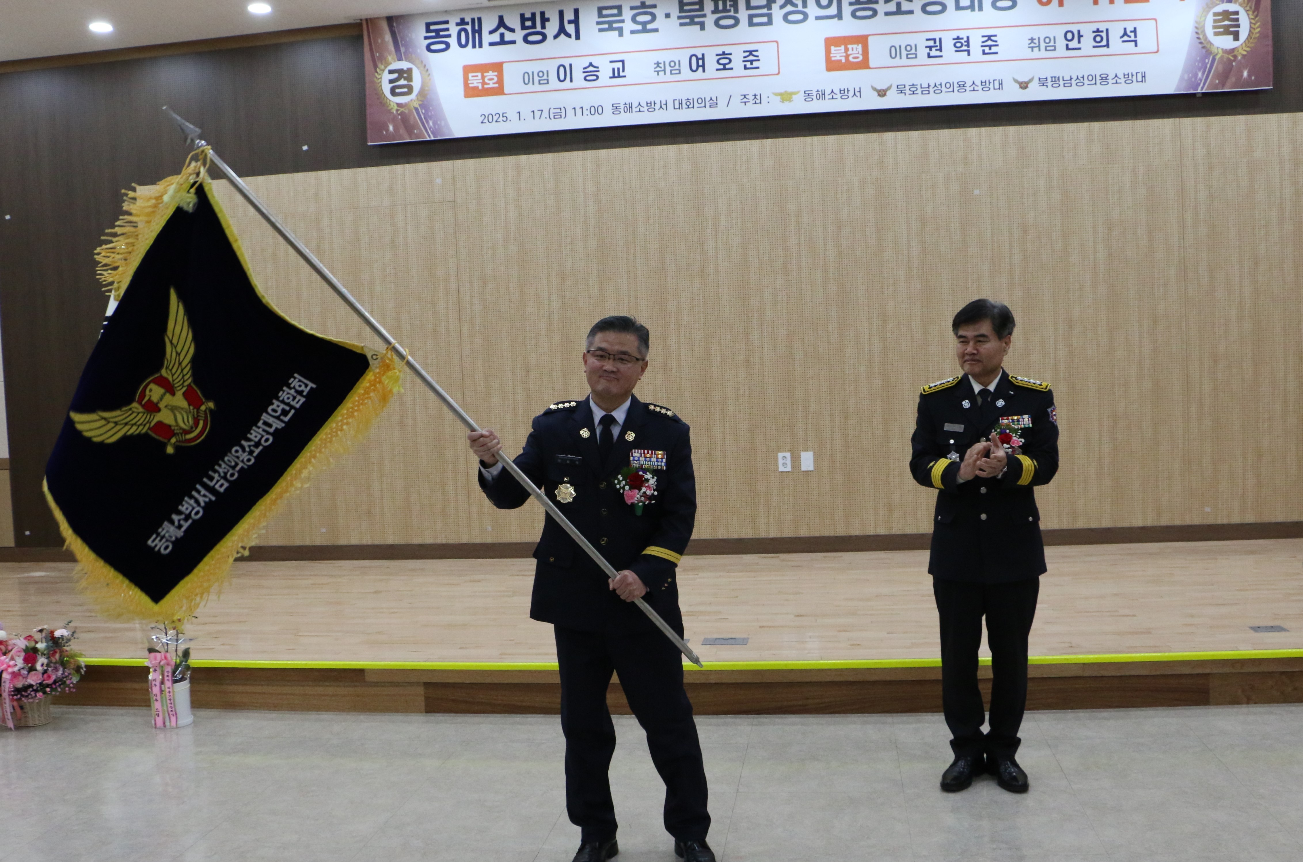 묵호의용소방대 이승교 대장이 이임하고 여호준 대장이 취임했고, 북평의용소방대는 권혁준 대장이 이임하고 안희석 대장이 취임했다. 이승교 대장은 동해시 의용소방대연합회 깃발을 신임 안희석 대장에게 전달하며 동해시 의용소방대연합회장 역할을 잘 해주기를 당부했다.