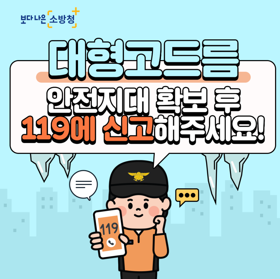 3. 대형 고드름이 생긴 건물 근처 인도에는 경고문 부착 또는 통제선 설치