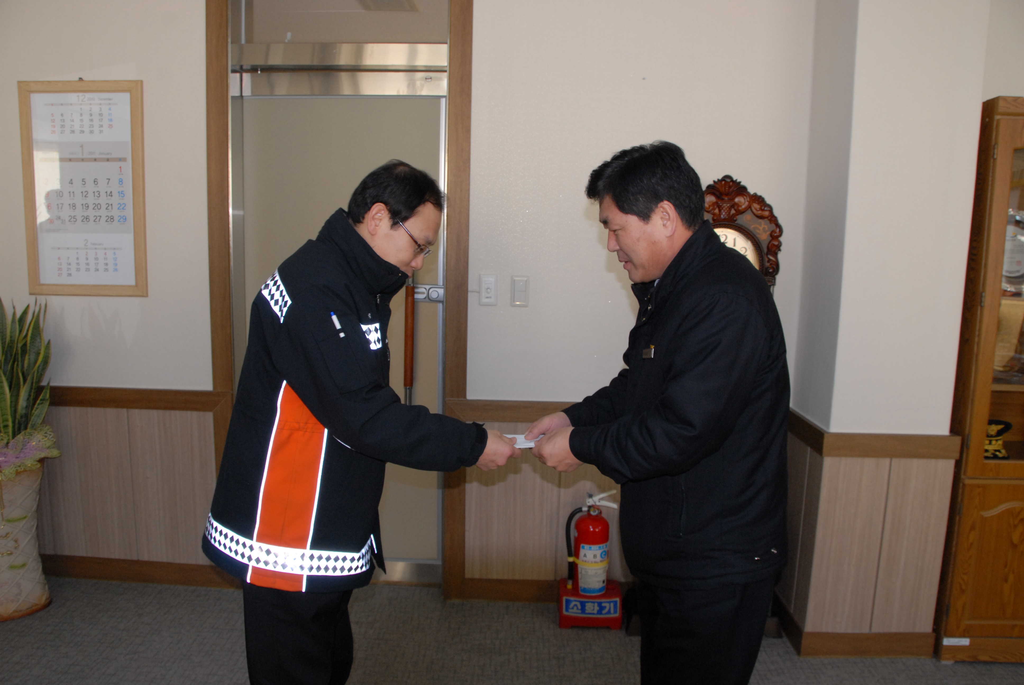 2011. 1. 27(금) 09:30 서장실에서 동해소방서 사랑나눔회 추가성금 전달이 있었습니다.