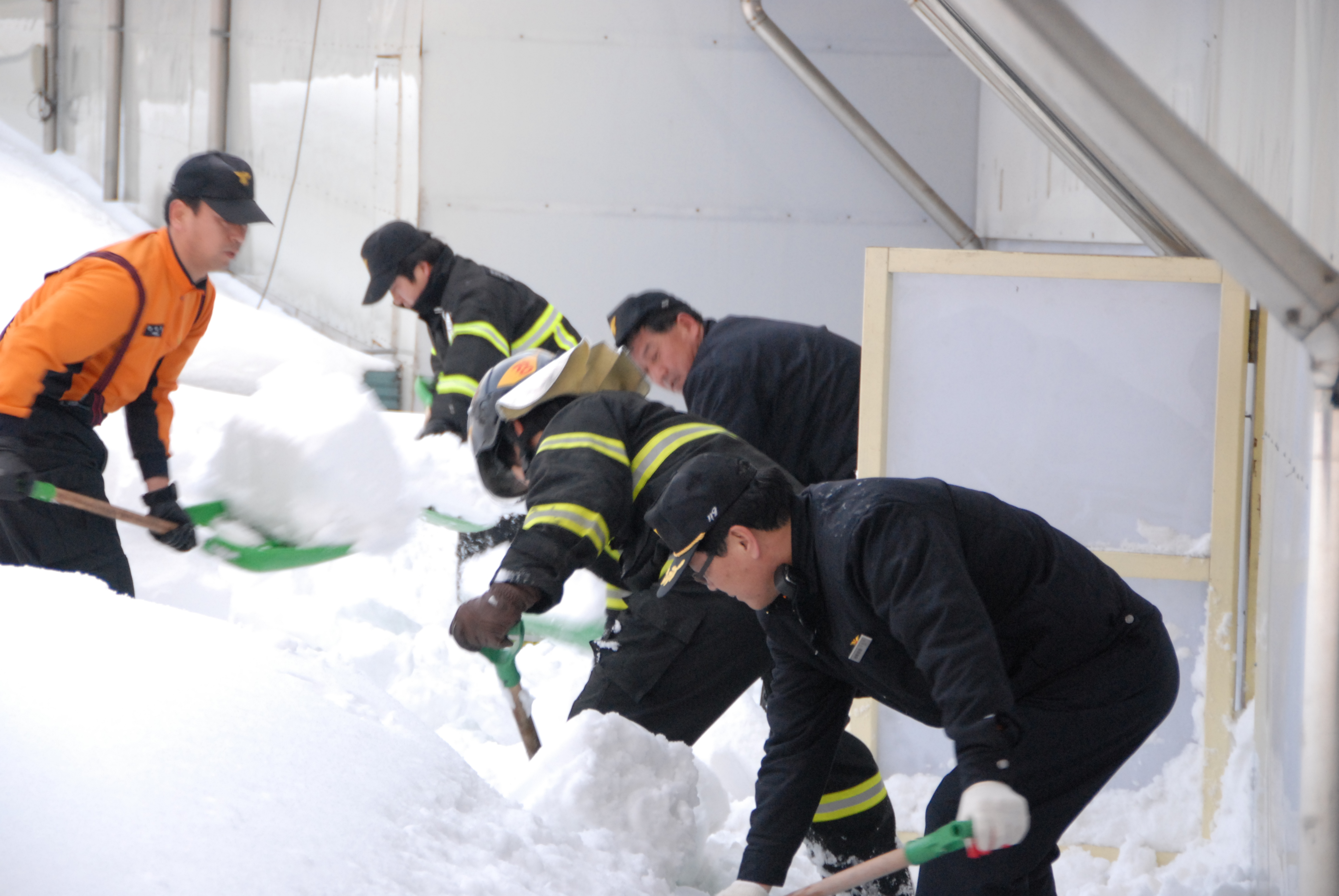 동해소방서 (서장 김남숙)은 금일 저녁 묵호 중앙시장 지붕 붕괴 대비하여 제설작업을 실시하였습니다.
