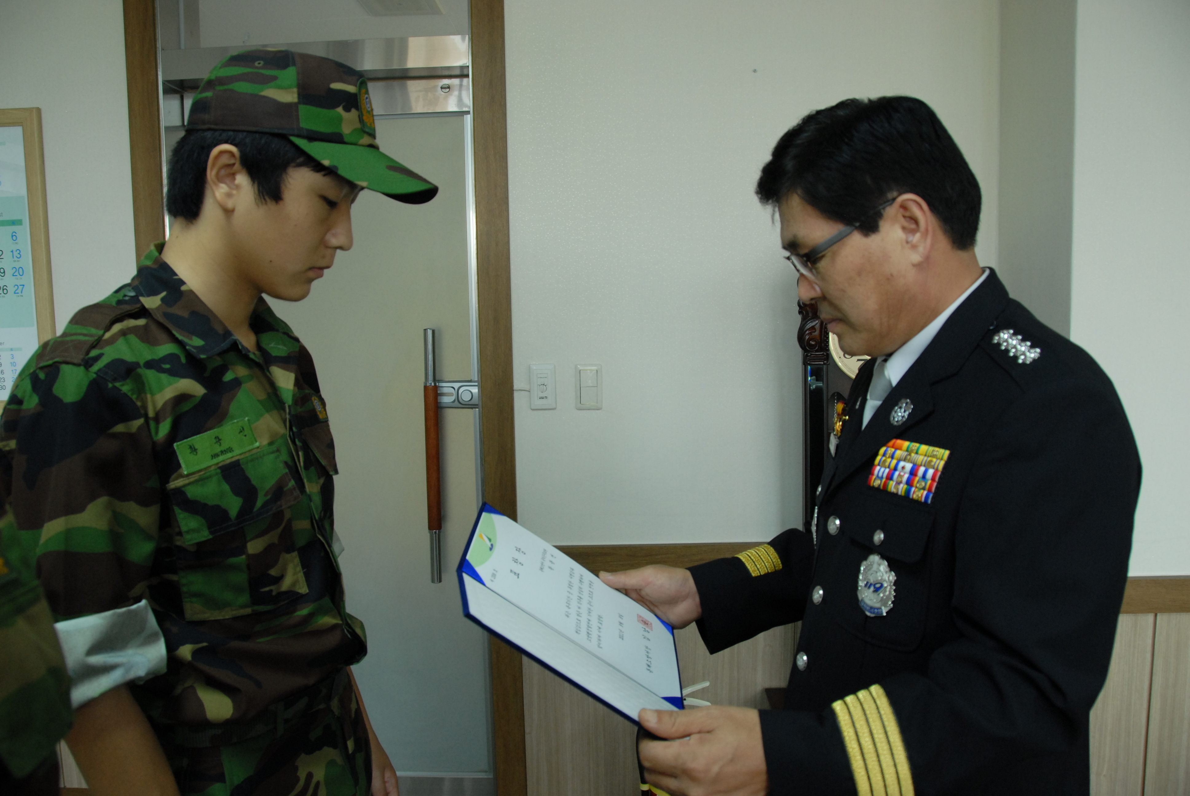 동해소방서 (서장 김남숙) 에서는 금일 오전 집무실에서 우리서 공익근무요원 으로 복무하였던 북삼센터 홍석주, 북평센터 황광선에게 표창장을 전수하였습니다.
