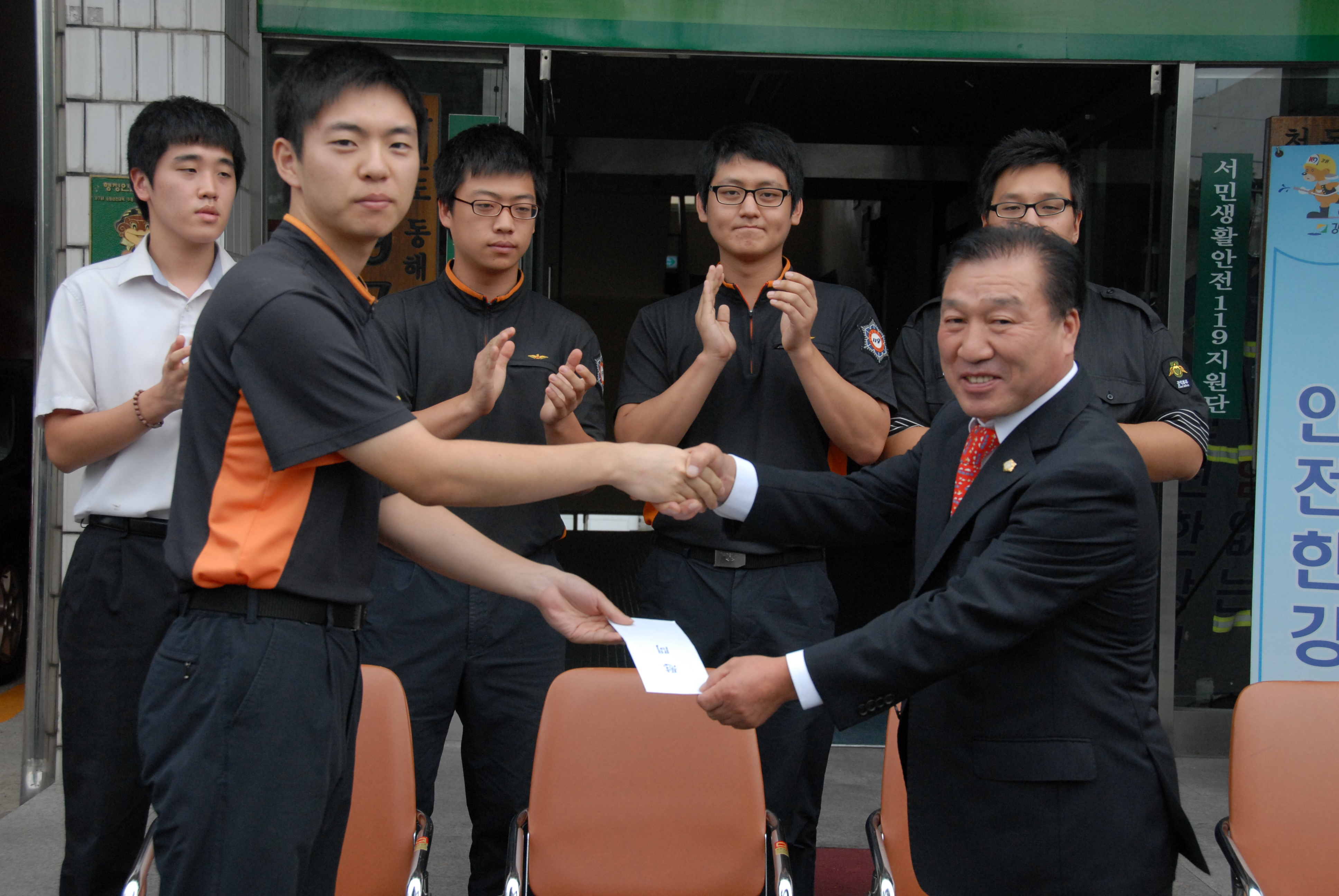 동해시의회 의장, 농협시지부장, 코레일지사장,쌍용양회 동해공장장 님은 서장실에서 격려 말씀 후 위문금을 전달하였습니다