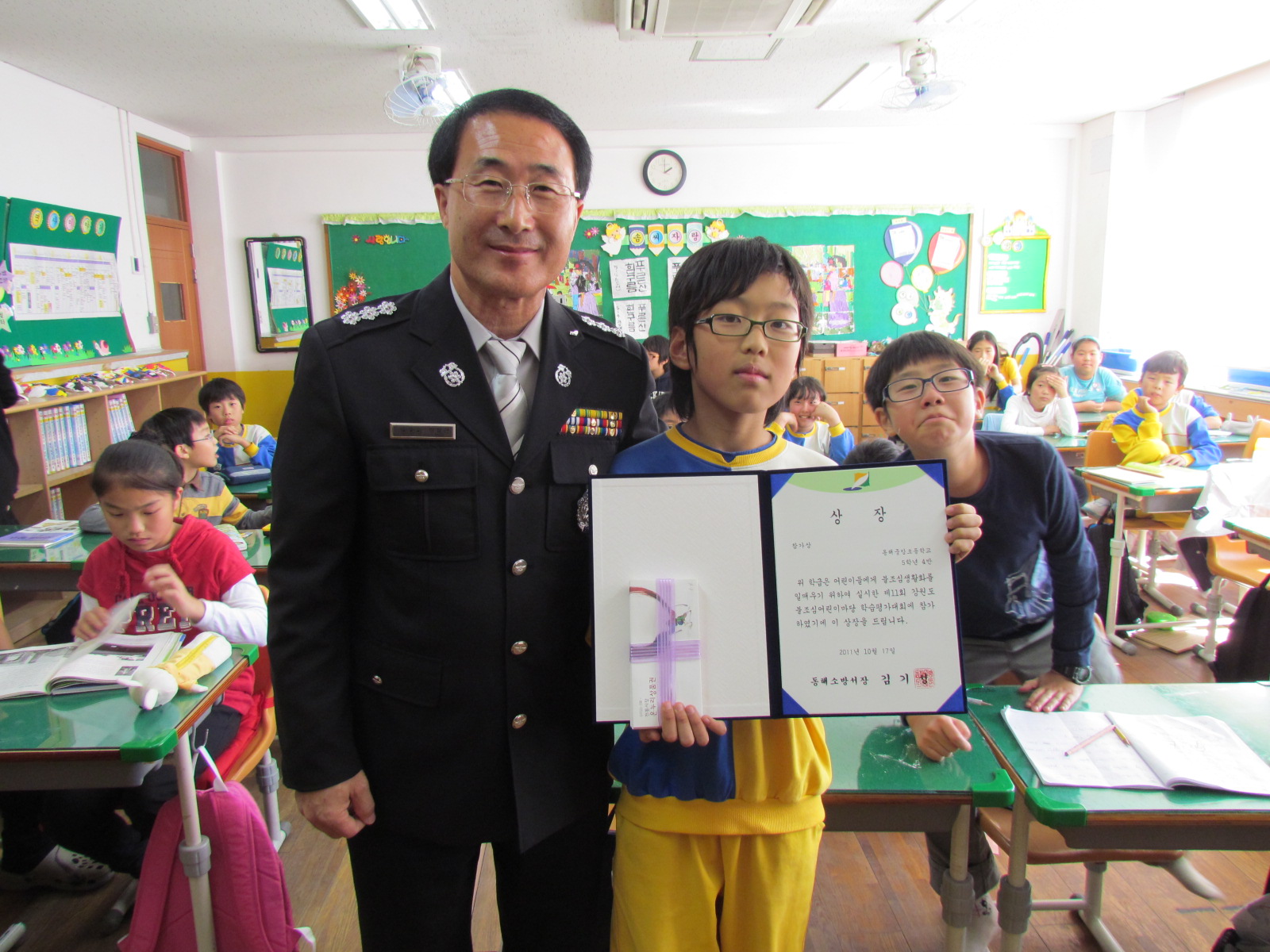 제11회 강원도 불조심 어린이마당 참가 학급에 대한 시상식을 가졌습니다.
