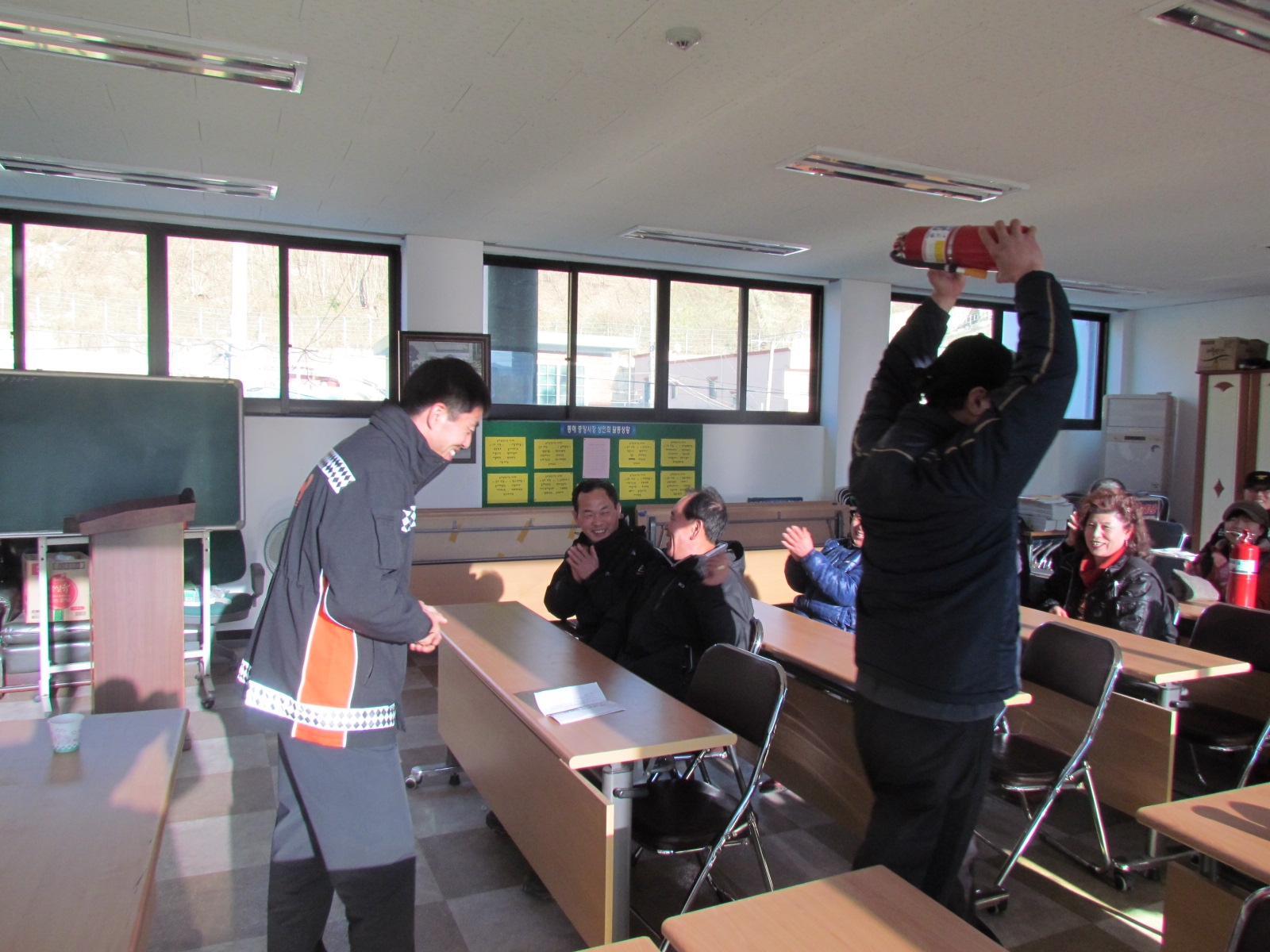 소방 퀴즈풀이를 통한 분말소화기 시상 등