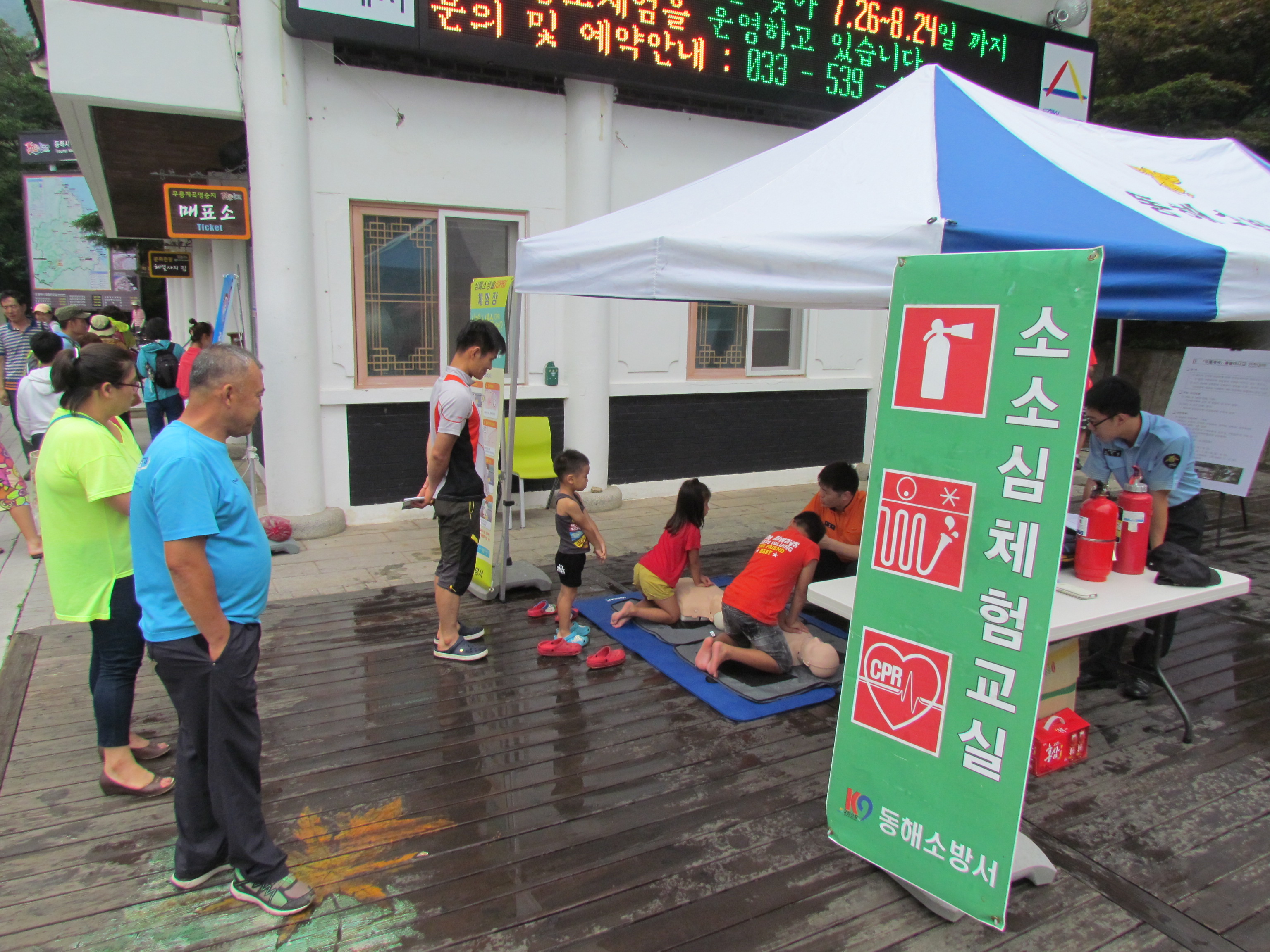 동해소방서(서장 주항중)는 2014.8.14 무릉계곡에서 산악객을 대상으로 소소심체험장(소화기,소화전,심폐소생술)을 운영하였습니다.