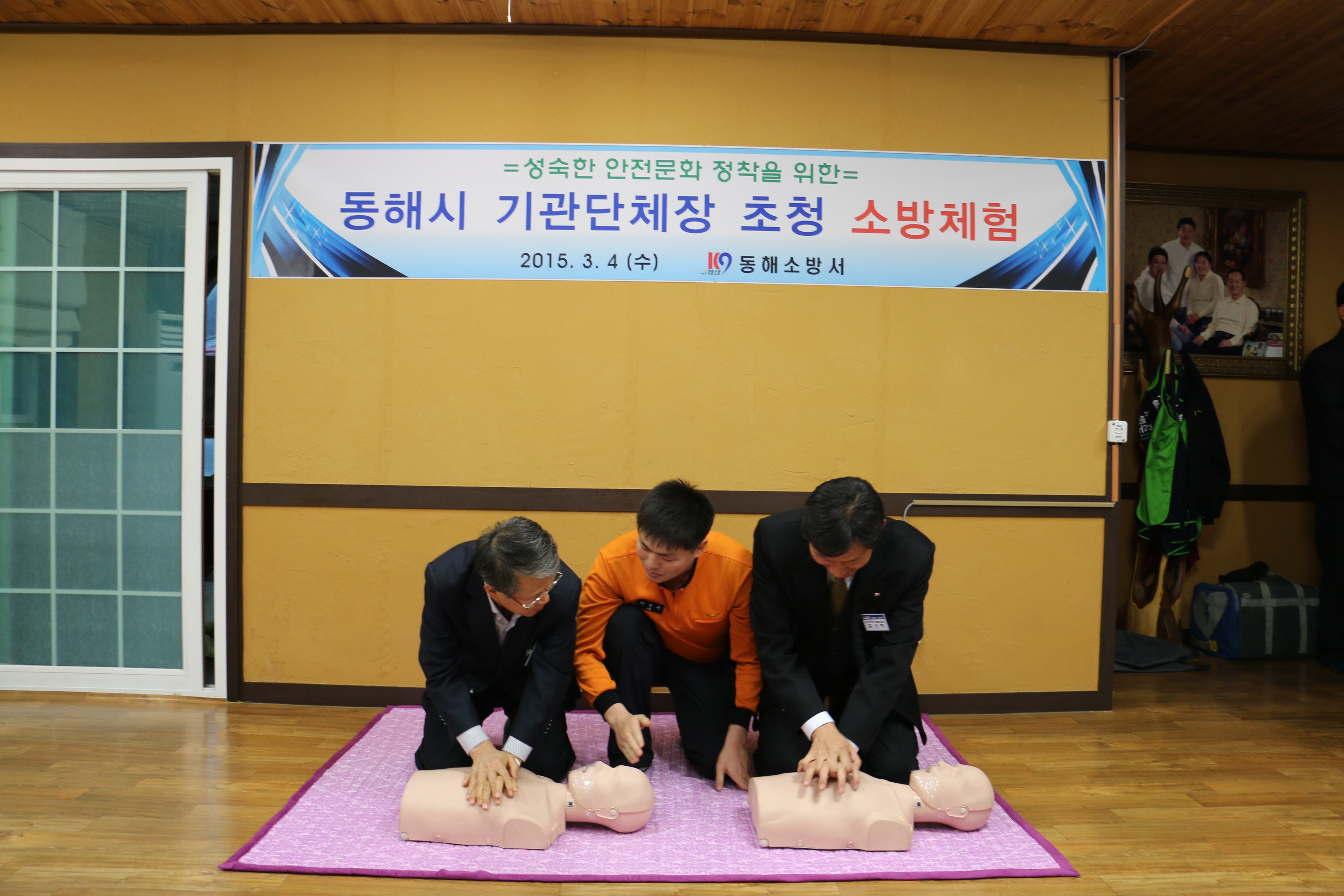동해소방서(서장 주항중)는 4일(수) 오후 6시 부곡동 이동소방안전체험장에서 심규언동해시장, 김혜숙 동해시의회 의장 등 동해시 기관단체장 25명 대상으로 지역사회 지도층 초청 소방체험 행사를 운영 했다.