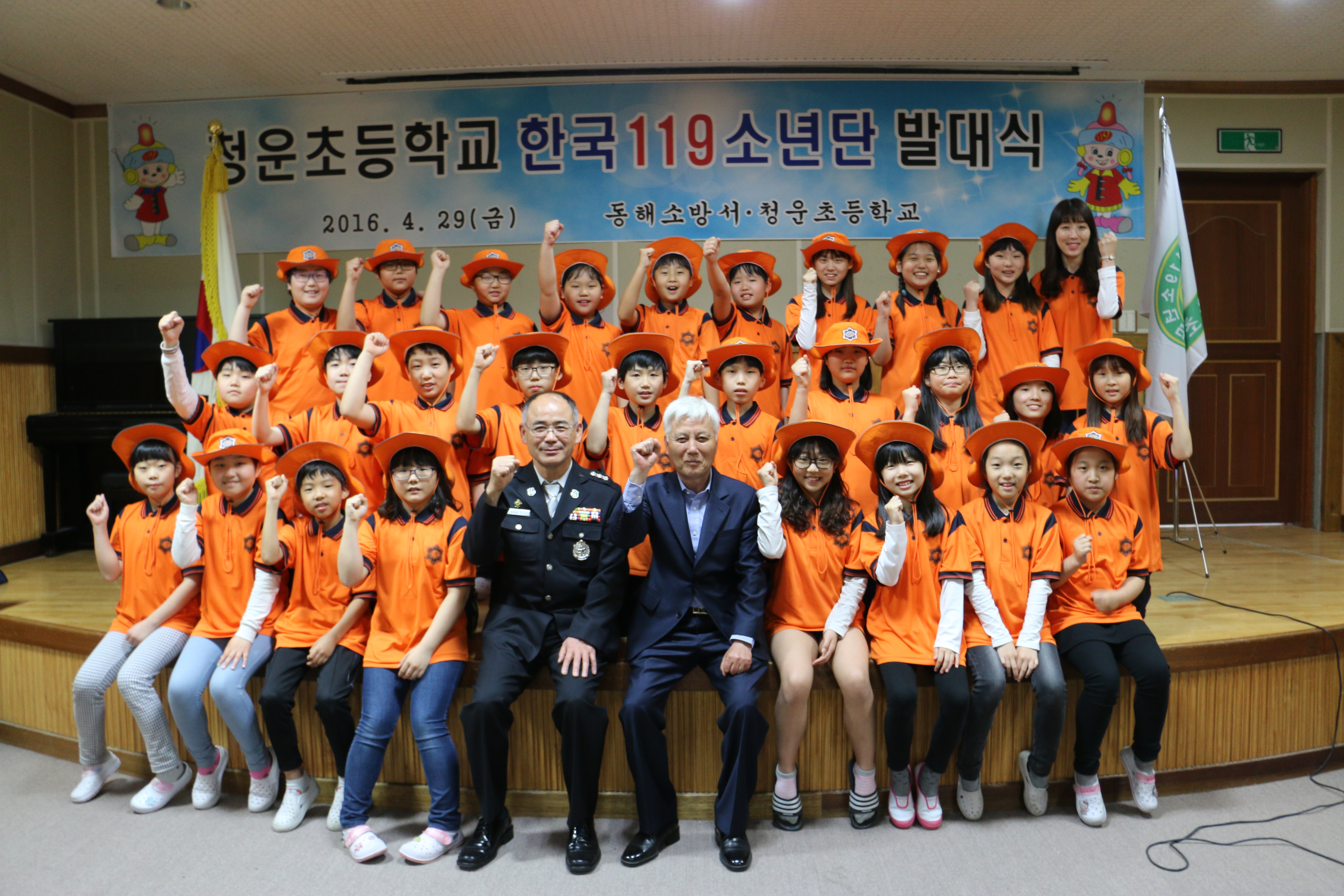 동해소방서(서장 김영조)는 29일(금) 오후1시 30분 청운초등학교 시청각실에서 한국119소년단 27명이 참여한 가운데 2016년 한국119소년단 발대식을 갖고 운동장에서 소방안전체험행사를 가졌다.
