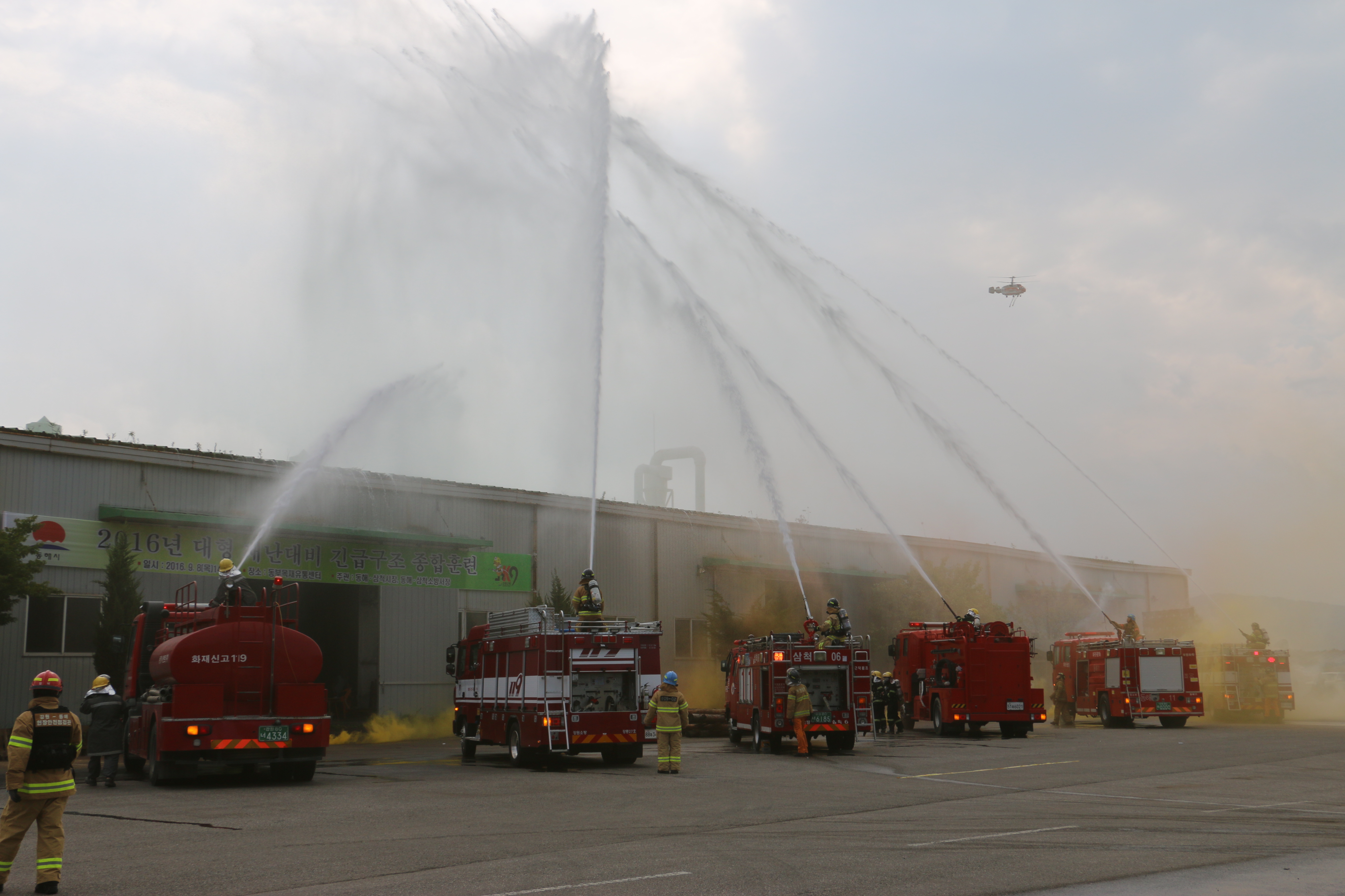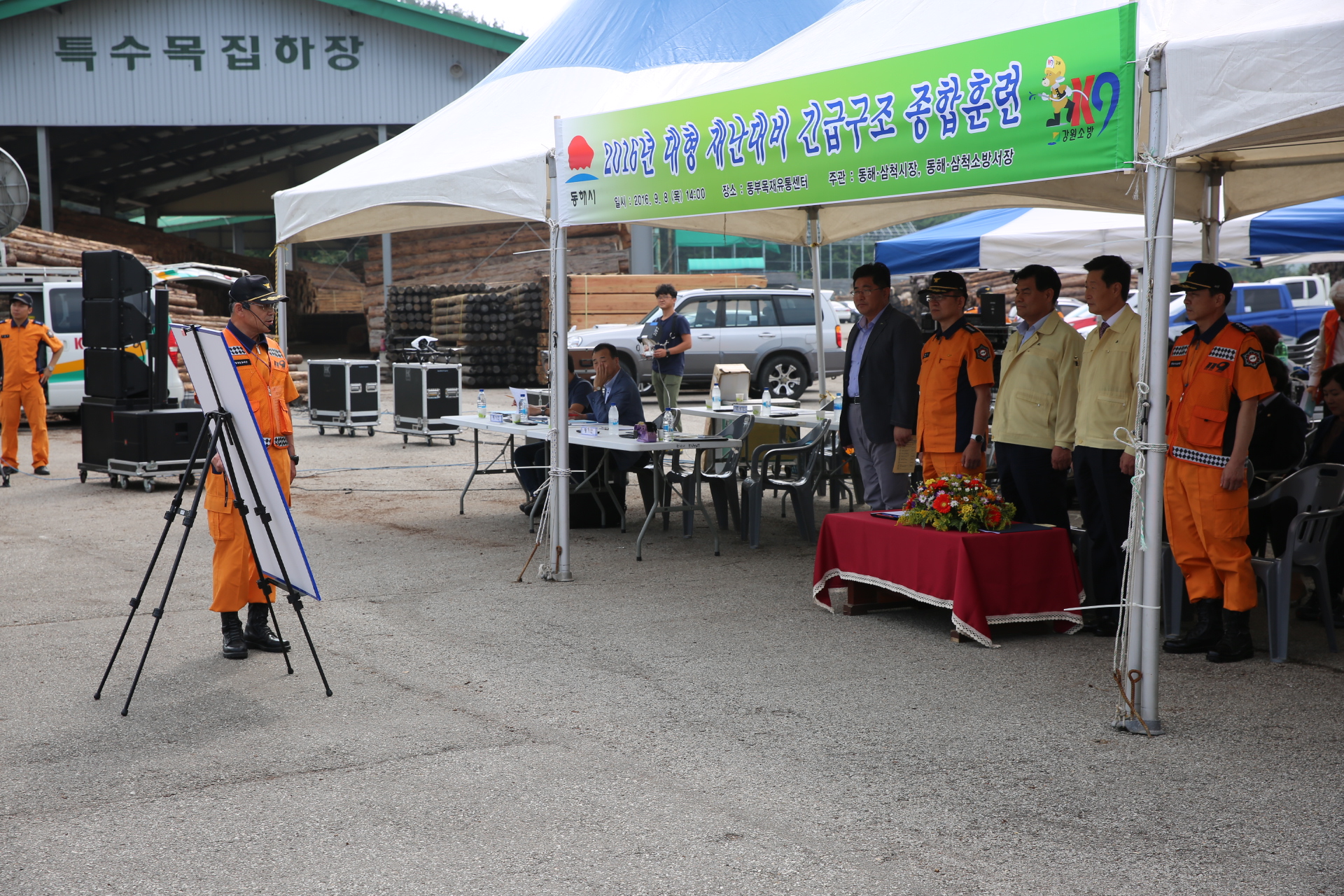 9.8일 14:00 동해시 망상동 동부목재유통센터 대상 재난대비 긴급구조종합훈련을 실시하였습니다.