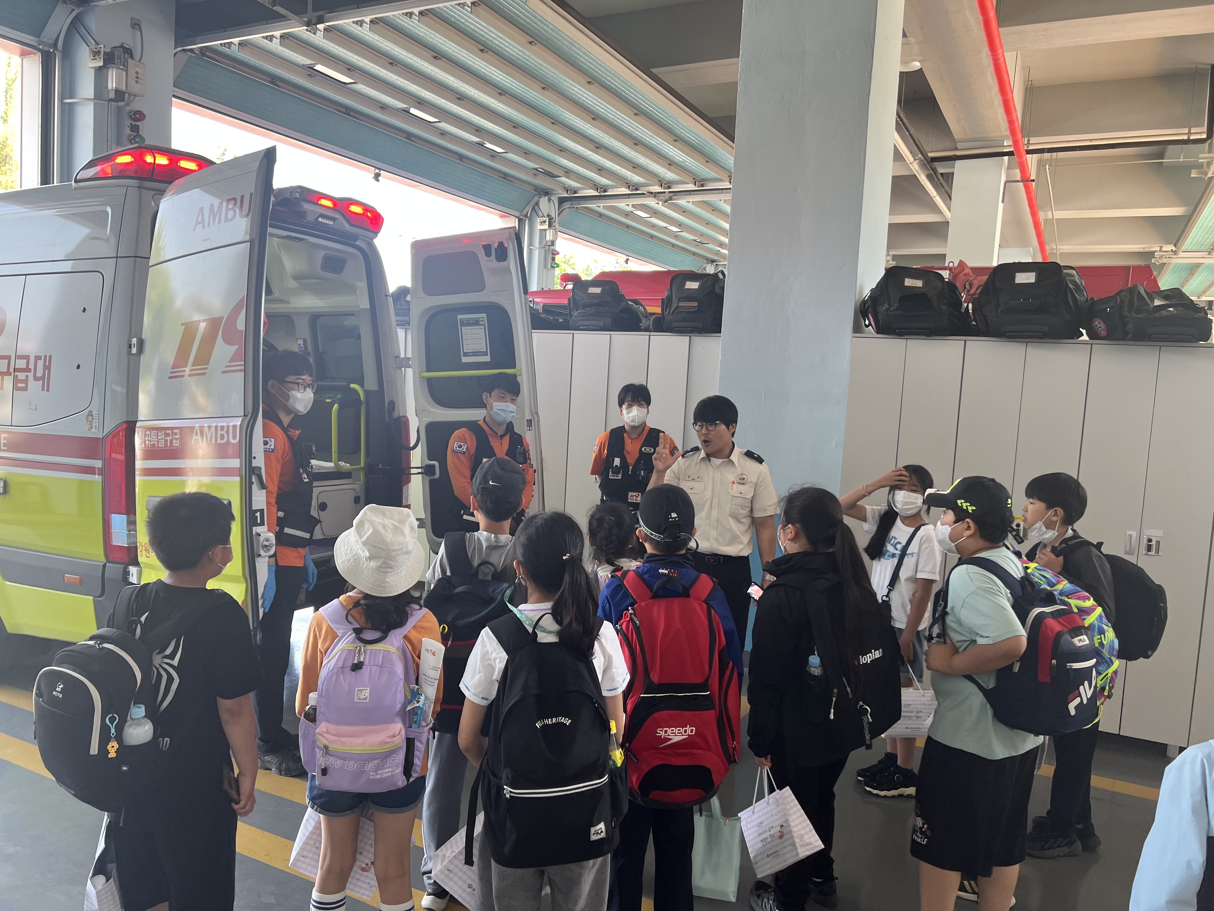 삼화초등학교 친구들을 맞이해준 소방위 김구, 소방교 노현우, 천곡119안전센터 구급대원(소방교 박기성, 소방교 박성준, 소방사 신상근)에게 제가 대신 감사인사 전하겠습니다.