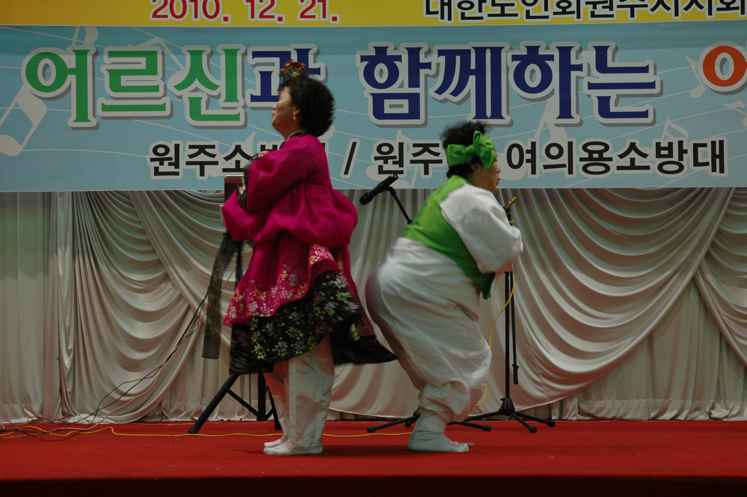 원주의용소방대(대장 조성일),원주여성의용소방대(대장 이현자)는 12월22일 10:30부터 원주중앙웨딩홀에서 지역어르신과 함께하는 어울림한마당을 어르신500명이 참가한 가운데열렸다. 이날행사에는 원주의용소방대 119밴드팀과 원주여성의용소방대 댄스팀이 1시간 공연을했다.
