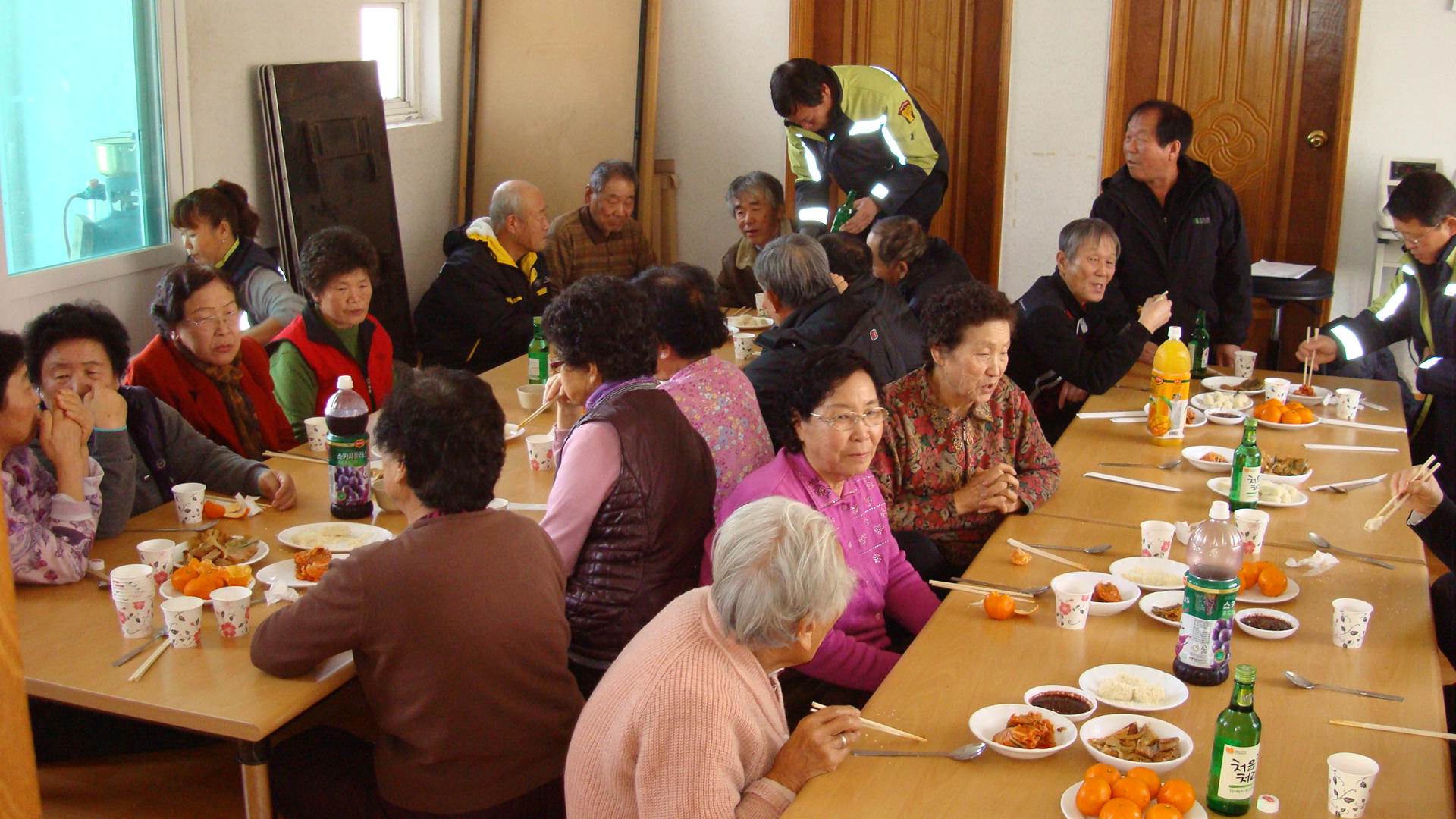 어르신들을 위해 대접하였습니다.